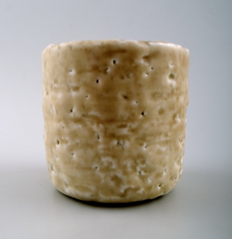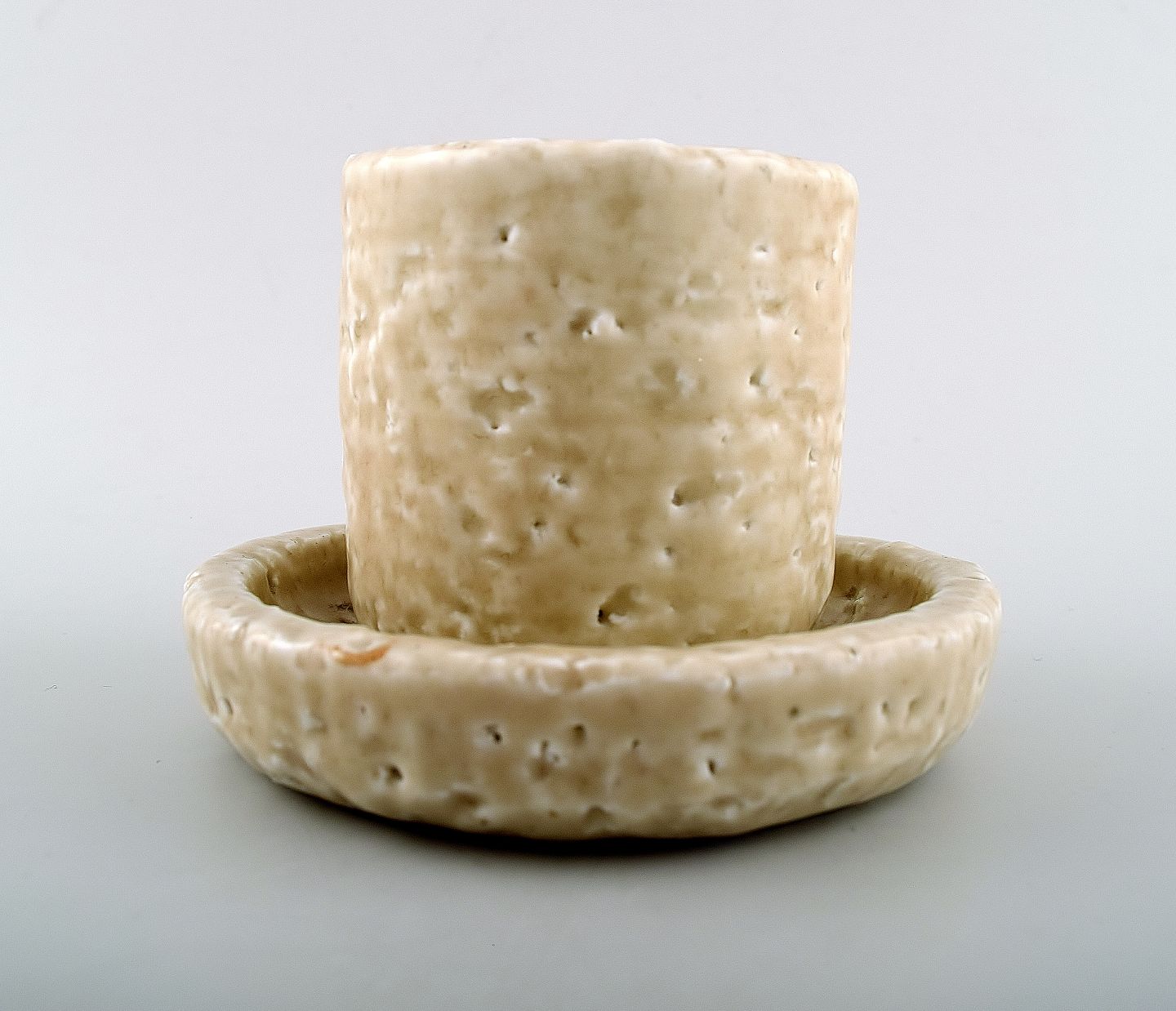 Rörstrand / Rorstrand Gunnar Nylund "Chamotte" vase and dish. Measures: 6.5 x 7 cm. and 11 x 1.5 cm. White glaze. Marked. In perfect condition.