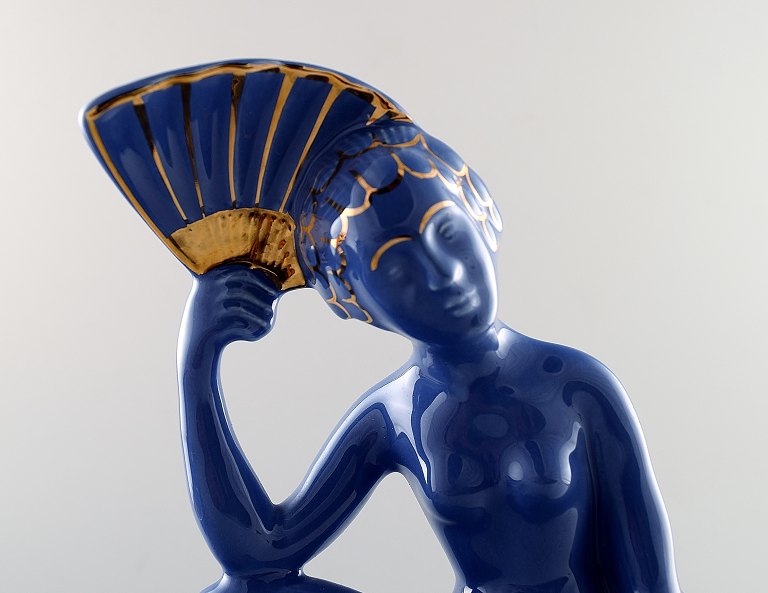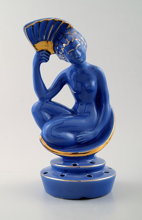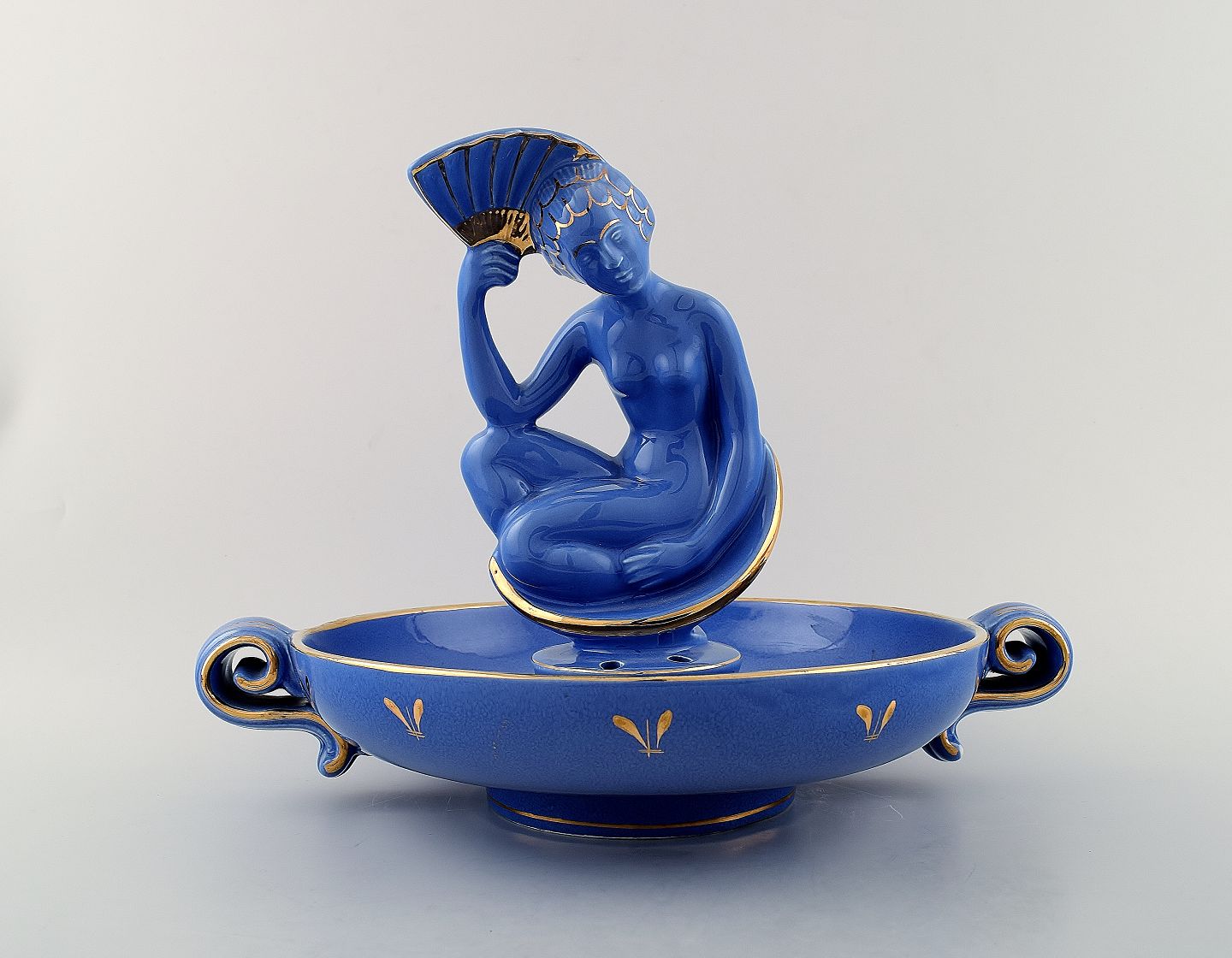 Gefle, "Safir", Sweden, Art deco floral centerpiece, naked woman with fan. Measures 33 x 29 cm. In perfect condition.