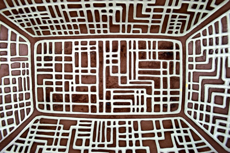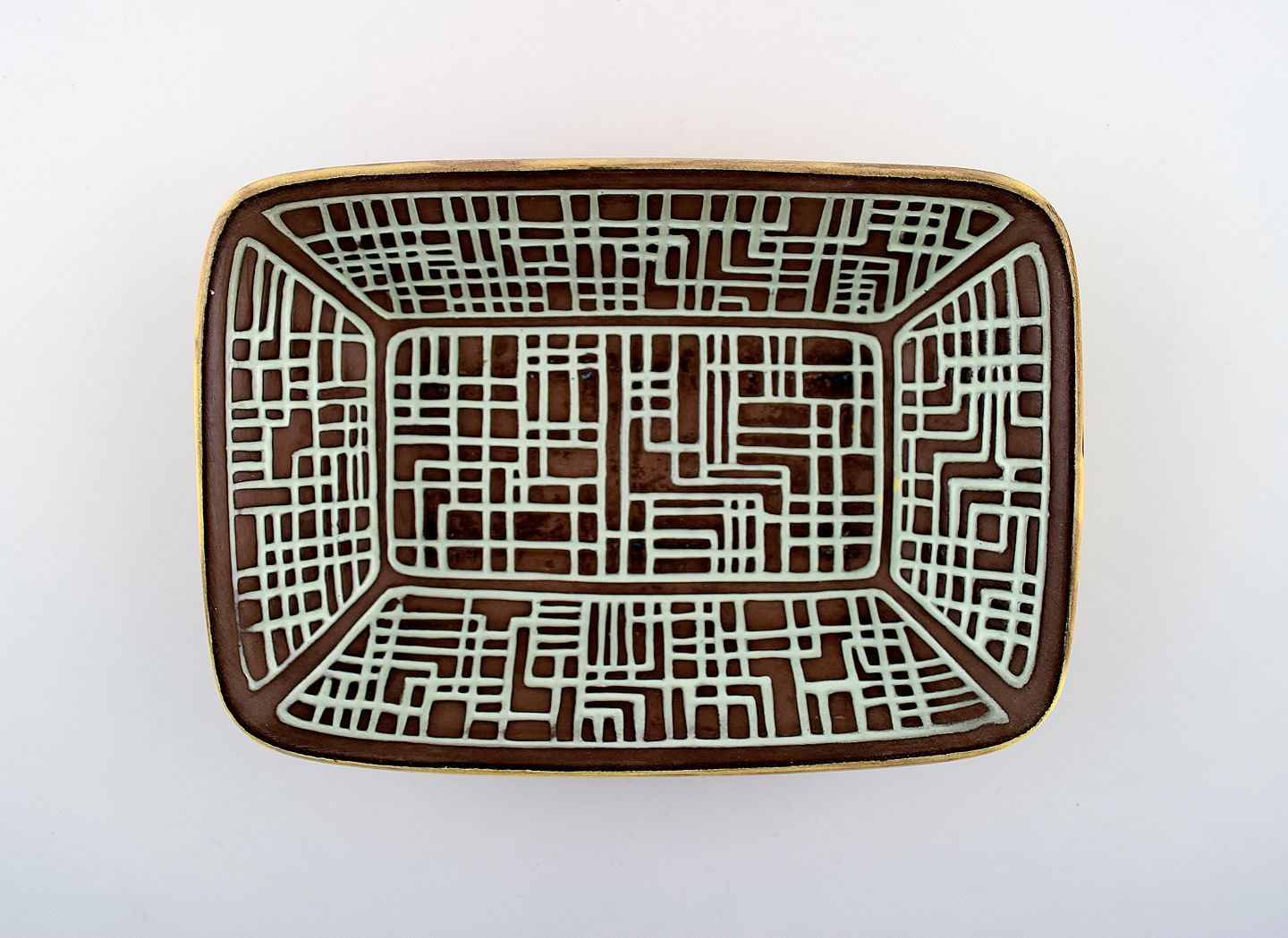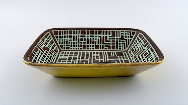 Upsala Ekeby ceramics, by Hjördis Oldfors, dish in modern design. retro 60s. Sweden. Measures: 23 x 16 x 6 cm. Model number 5174. Marked. In perfect condition.