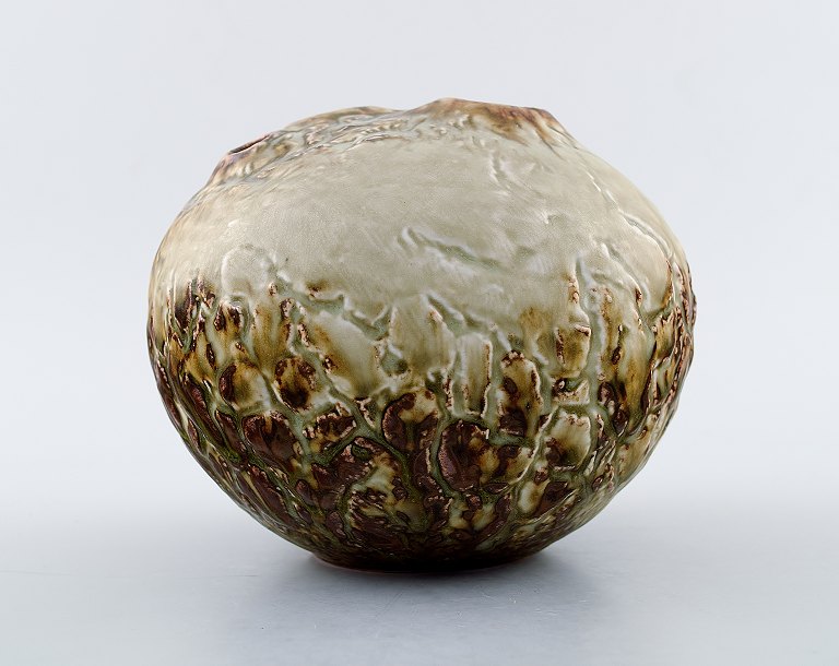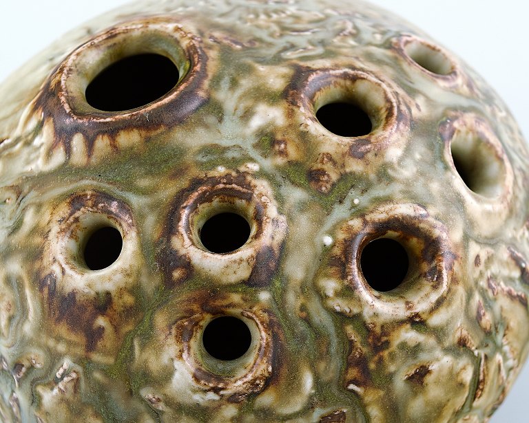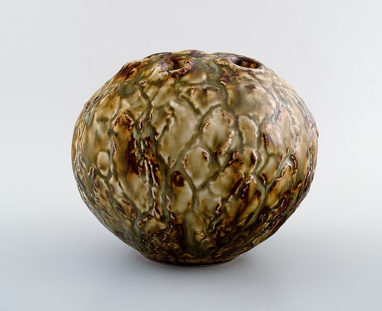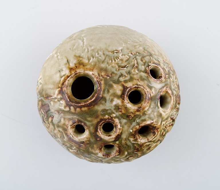 Unique stoneware vase / sculpture by Jørgen Mogensen, own workshop. Measures: 15 cm. x 15 cm. Stamp: JM. 1960s. In perfect condition.