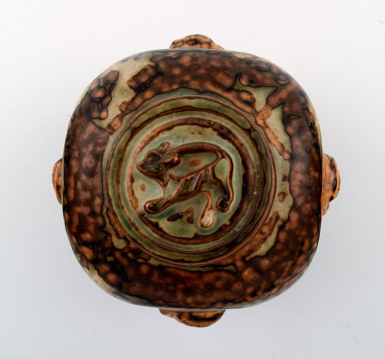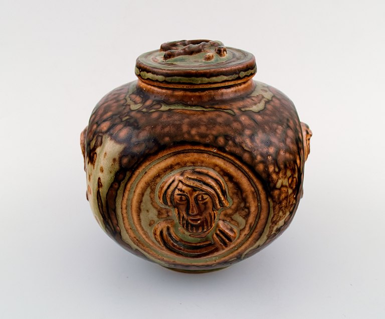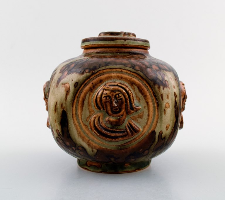 Royal Copenhagen Jais Nielsen lidded vase in stoneware, sung glaze.