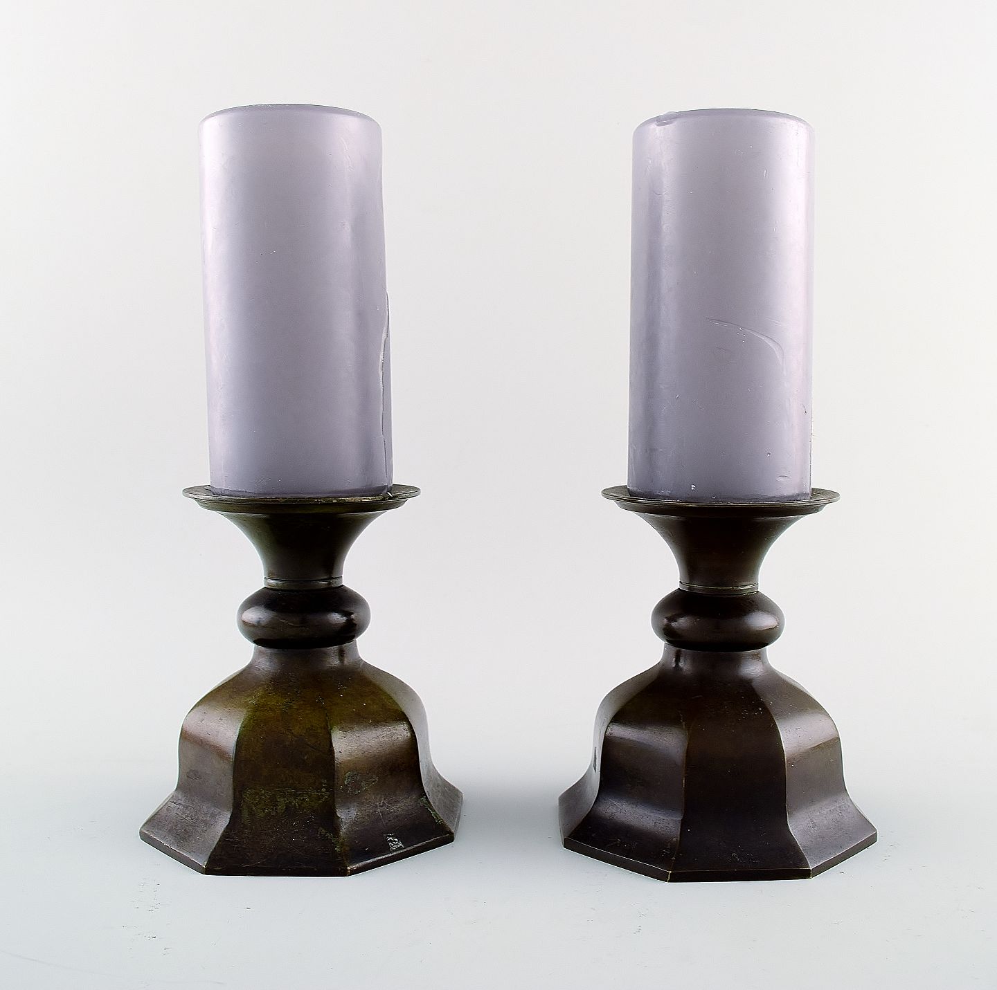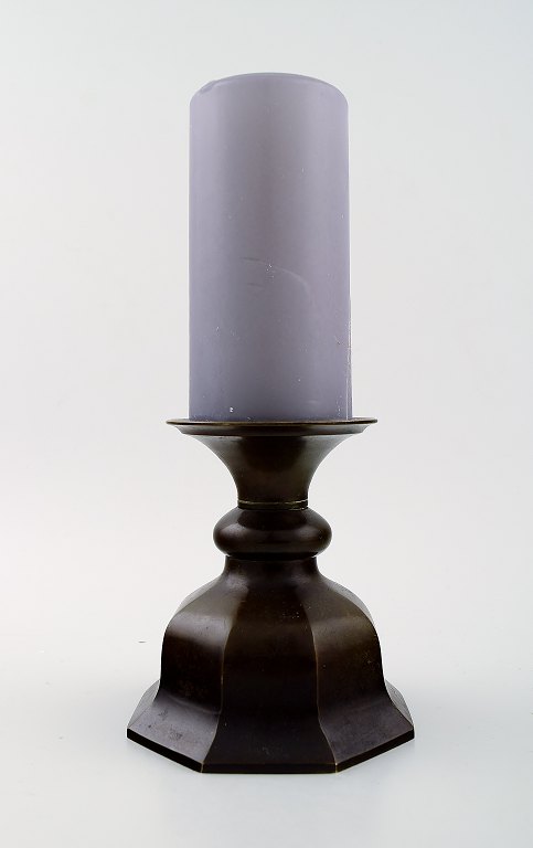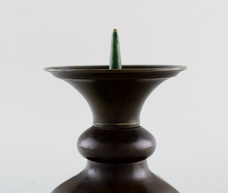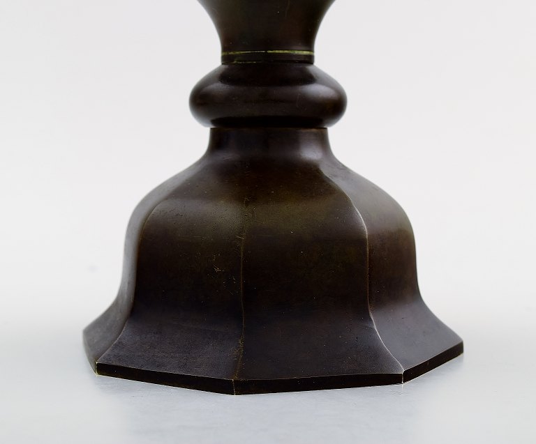 Just Andersen diskometal lysestager. Ustemplet. I flot stand med god patina. Måler 17 cm. x 12 cm.