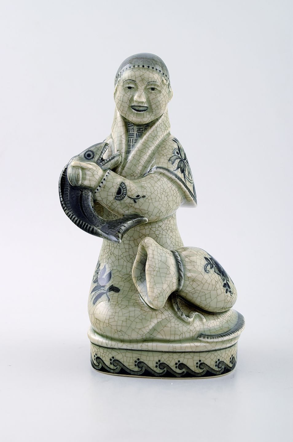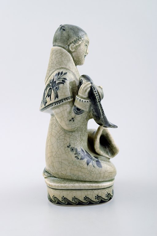 Sjælden Royal Copenhagen krakeleret/craquelé figur. Stemplet. I perfekt stand. 1. sortering. Måler 18 x 12 cm. Privatdekoreret.