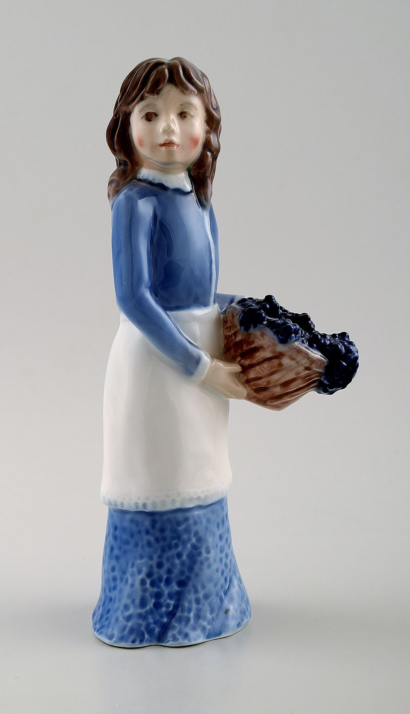 Bing & Grøndahl/B&G figur i porcelæn af pige med kurv.