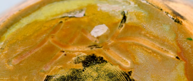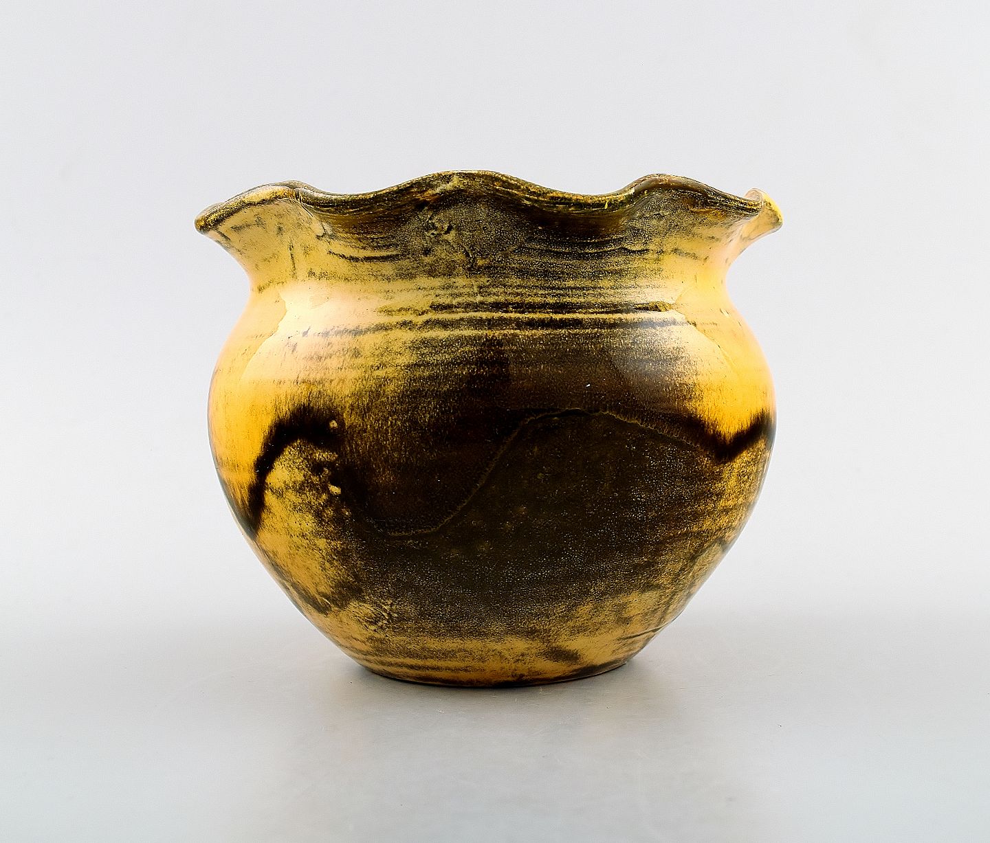 Kähler, HAK, glaseret keramikvase, 1930'erne. Designet af Svend Hammershøi. Urangul glasur. Måler 13 cm. x 10 cm. Stemplet. I perfekt stand.