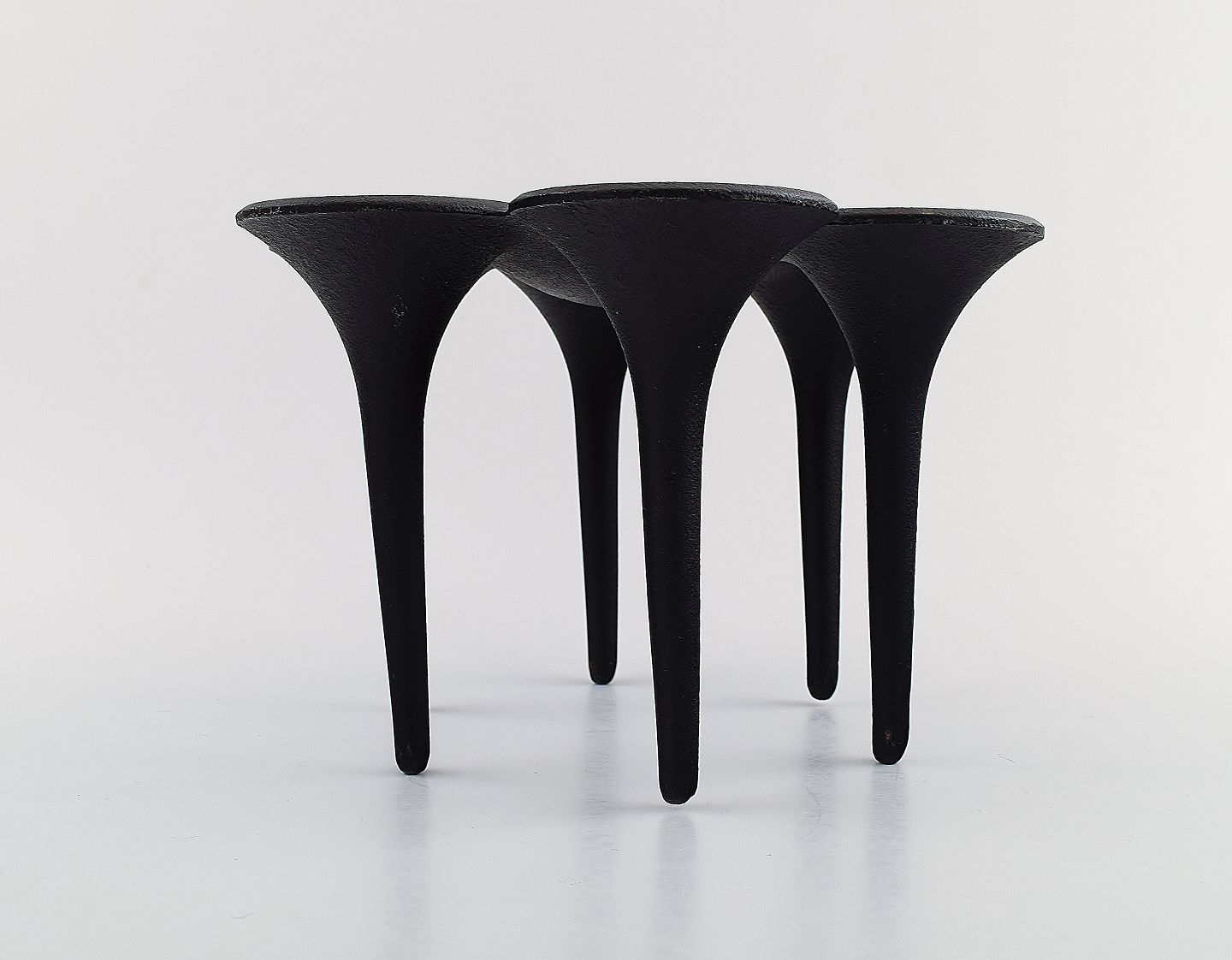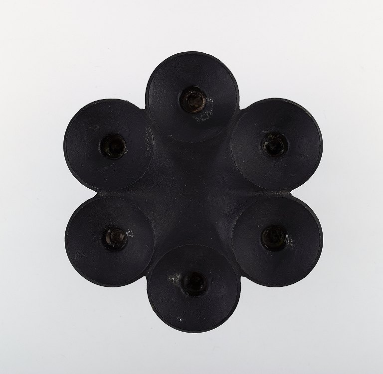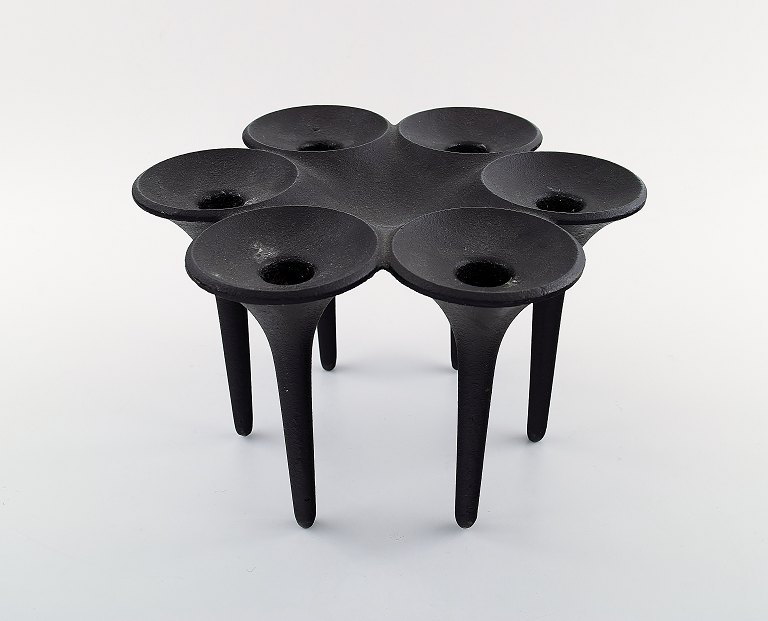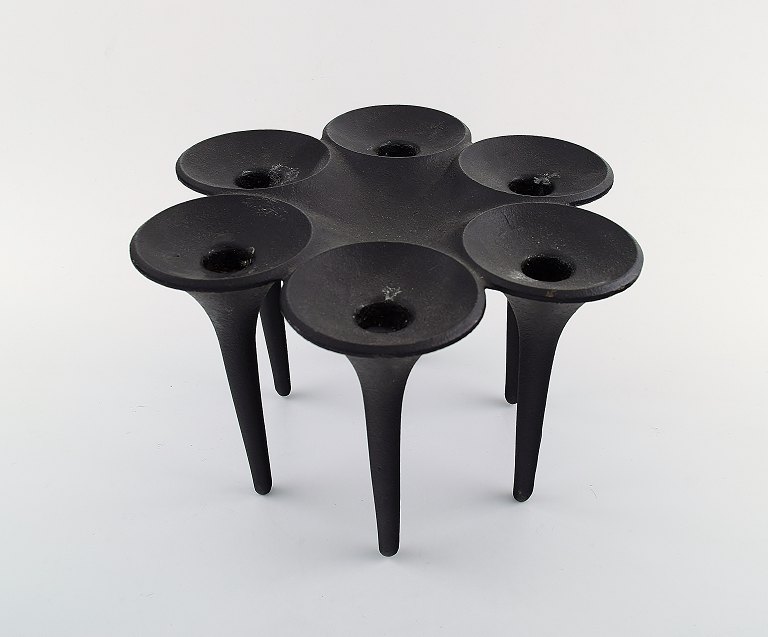 Jens H. Quistgaard lysestage i støbejern til seks lys. Dansk design 1960´erne. Pæn stand. Måler 22 x 14 cm. Stemplet.