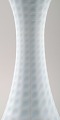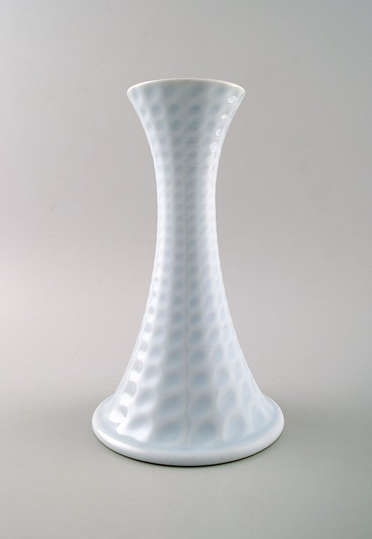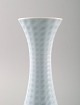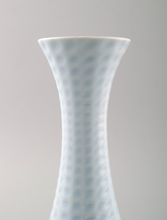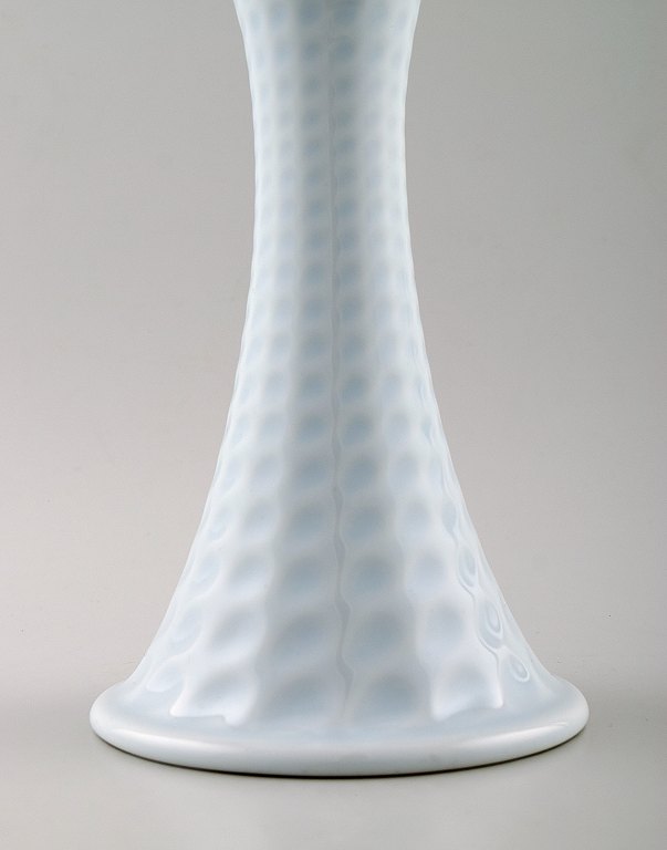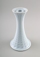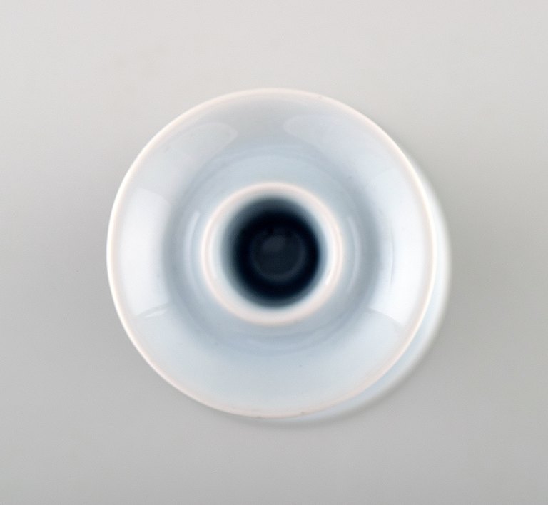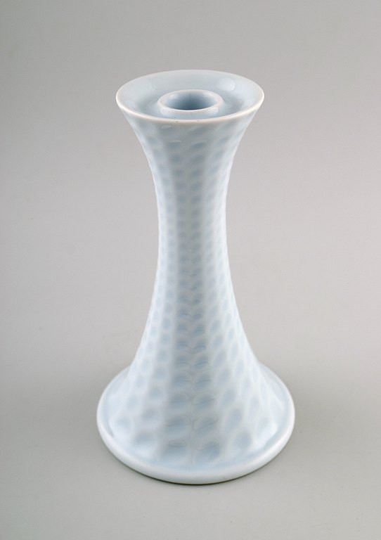 Royal Copenhagen porcelain pair of candlesticks. Beautiful glaze in light blue shades. Stamped. 2nd factory quality, in very good condition. Measures 20 cm.