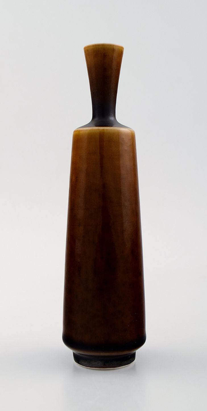 Berndt Friberg Studio keramikvase. Moderne svensk design. Unika, håndlavet. Fantastisk glasur i brune nuancer! Perfekt. 1. sortering. Måler: 15 x 3,5 cm.