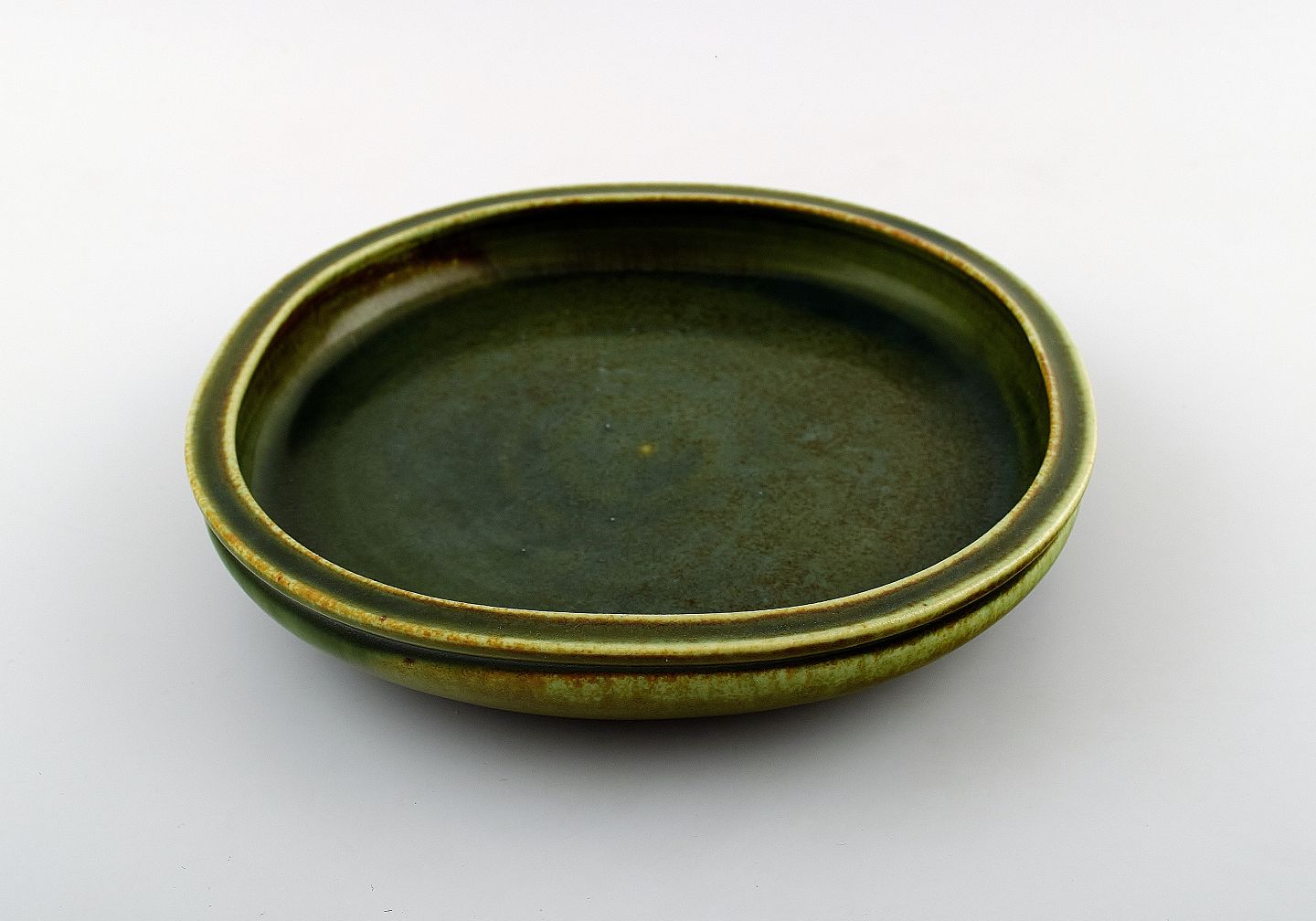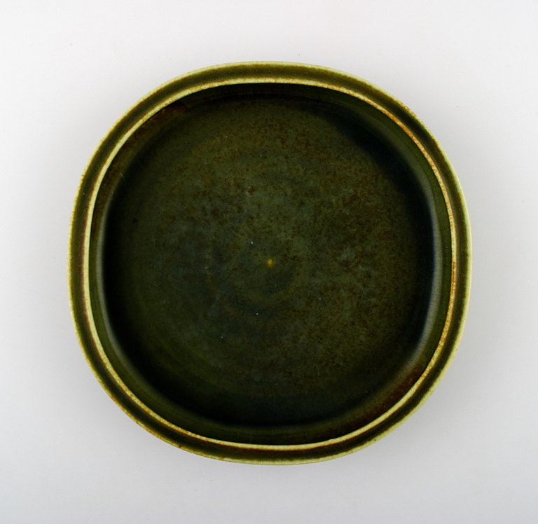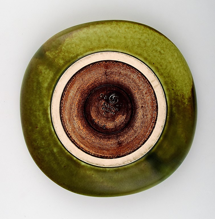 Saxbo, stort keramikfad, smuk grøn glasur.