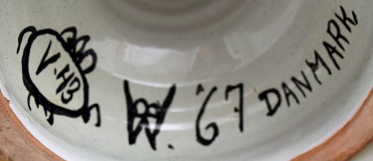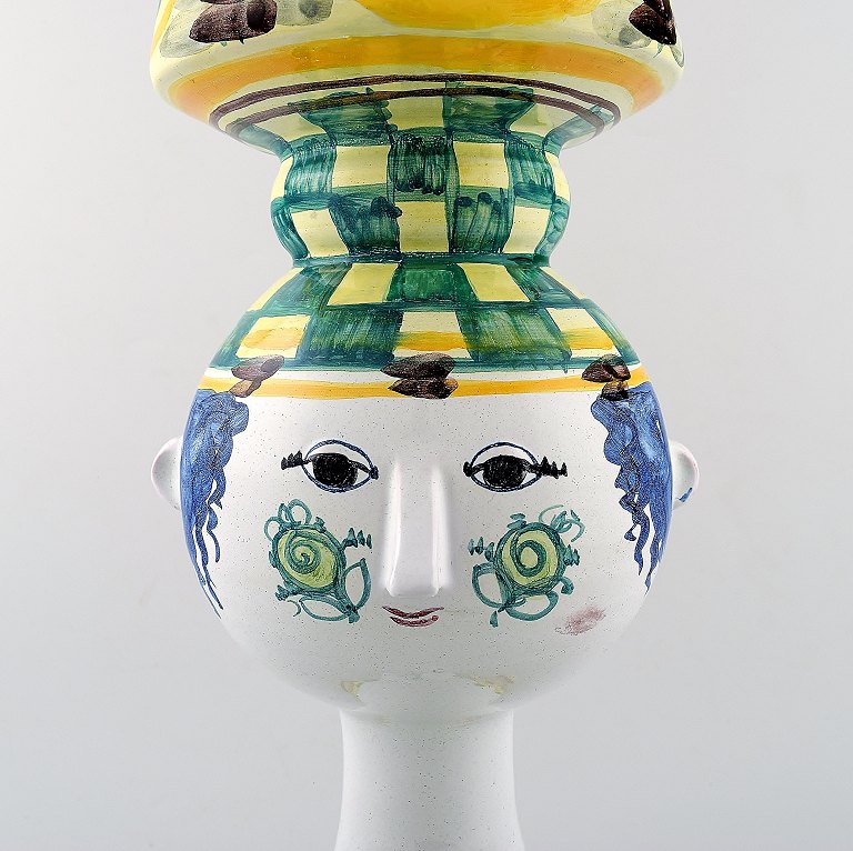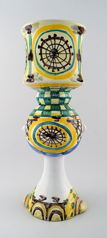 Stor Bjørn Wiinblad 1918-2006: Unika Vase i flerfarvet keramik, signeret i bunden med monogram V 43, 67 (1967) Danmark.