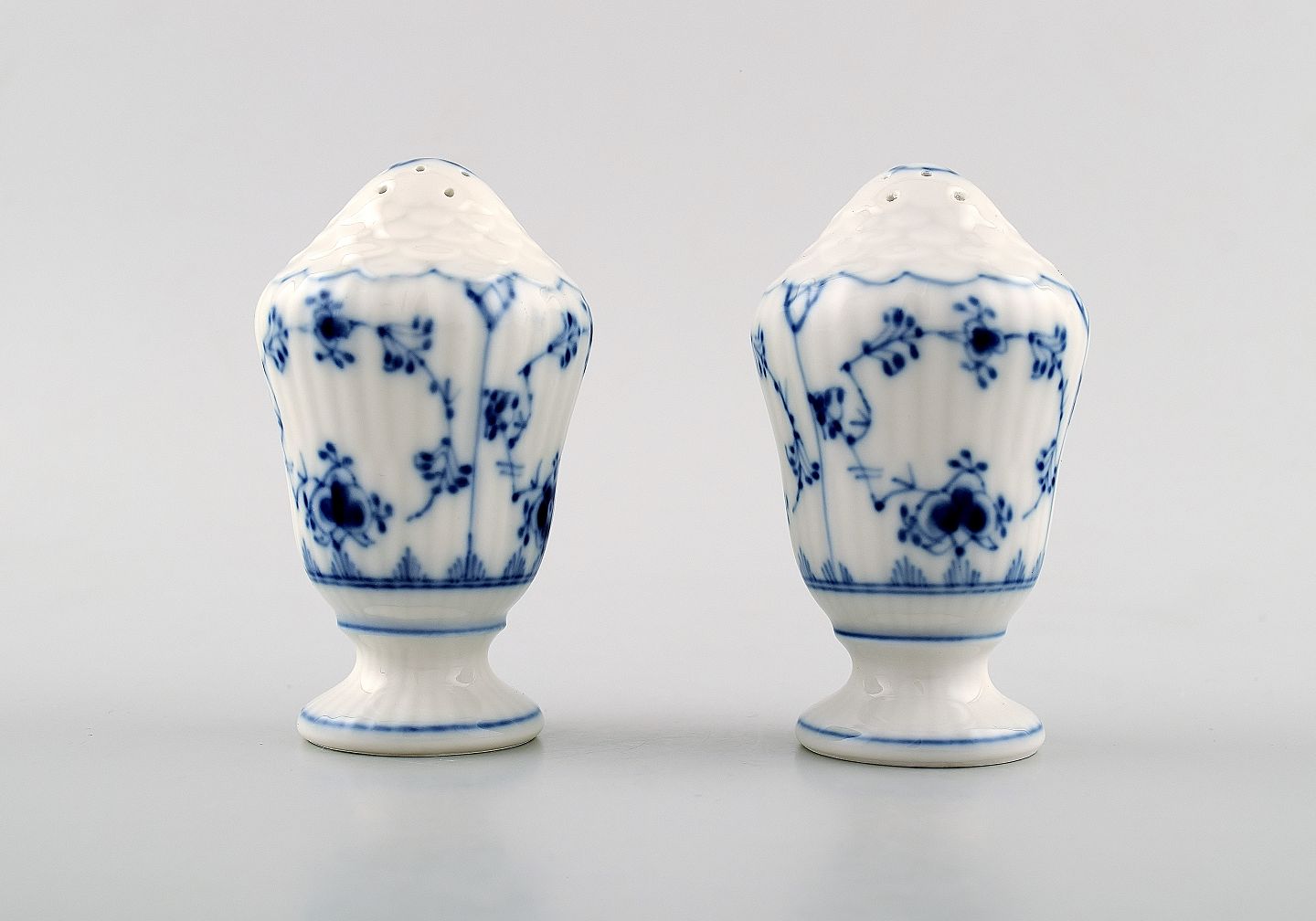 Royal Copenhagen Musselmalet riflet salt & peber sæt.