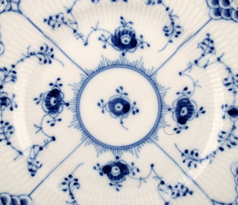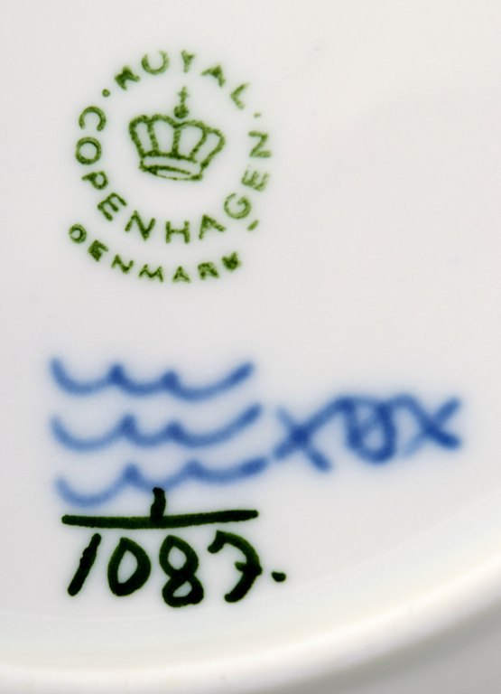 Musselmalet helblonde Royal Copenhagen porcelæn spisestel. Kongelig porcelæn. 23 tallerkener nr. 1/1087. 1. sortering, i perfekt stand. Måler 17,5 cm.