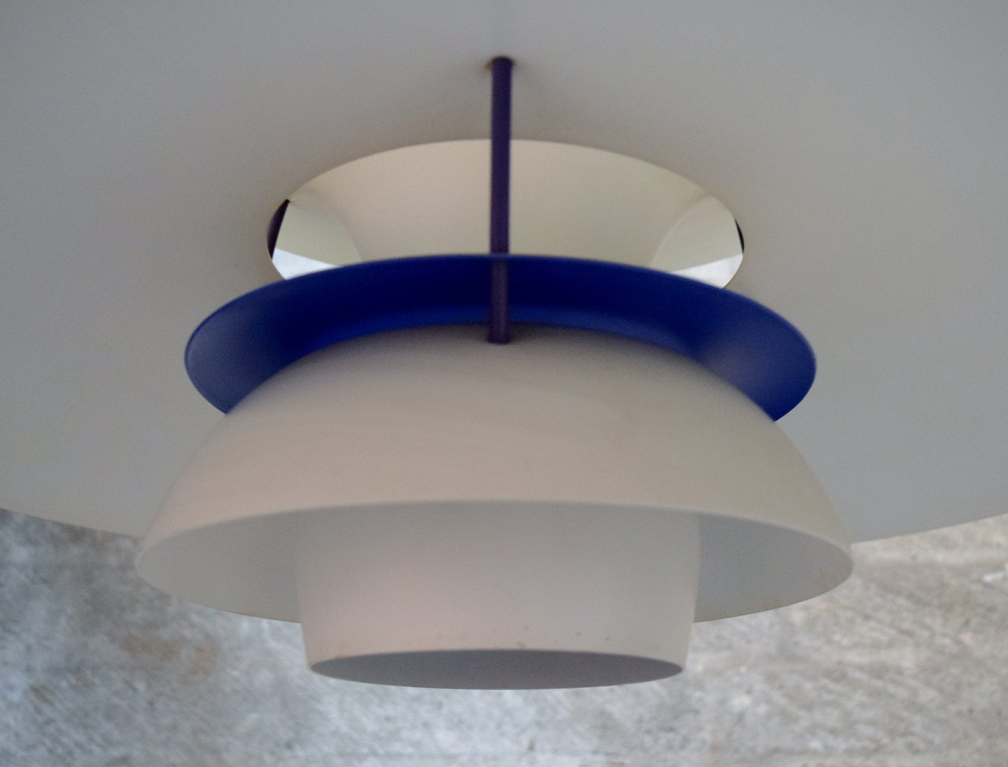 Poul Henningsen: "PH-5". Pendant with white metal shades. Manufactured by Louis Poulsen. Diameter 50 cm. In good condition. Normal wear.