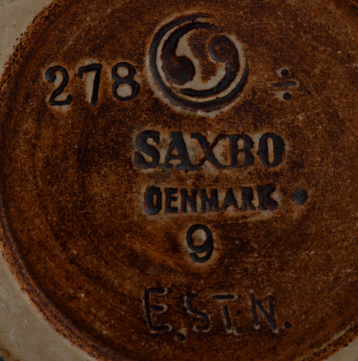 Eva Stæhr Nielsen for Saxbo, keramik vase i moderne design. Smuk glasur i blå og grønne toner. Stemplet. Modelnummer 278. Størrelse: 19 cm. I perfekt stand.