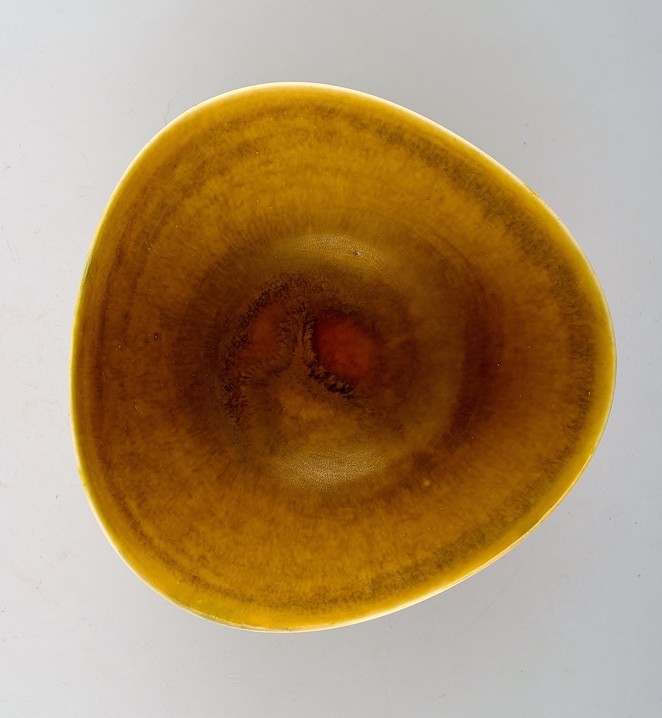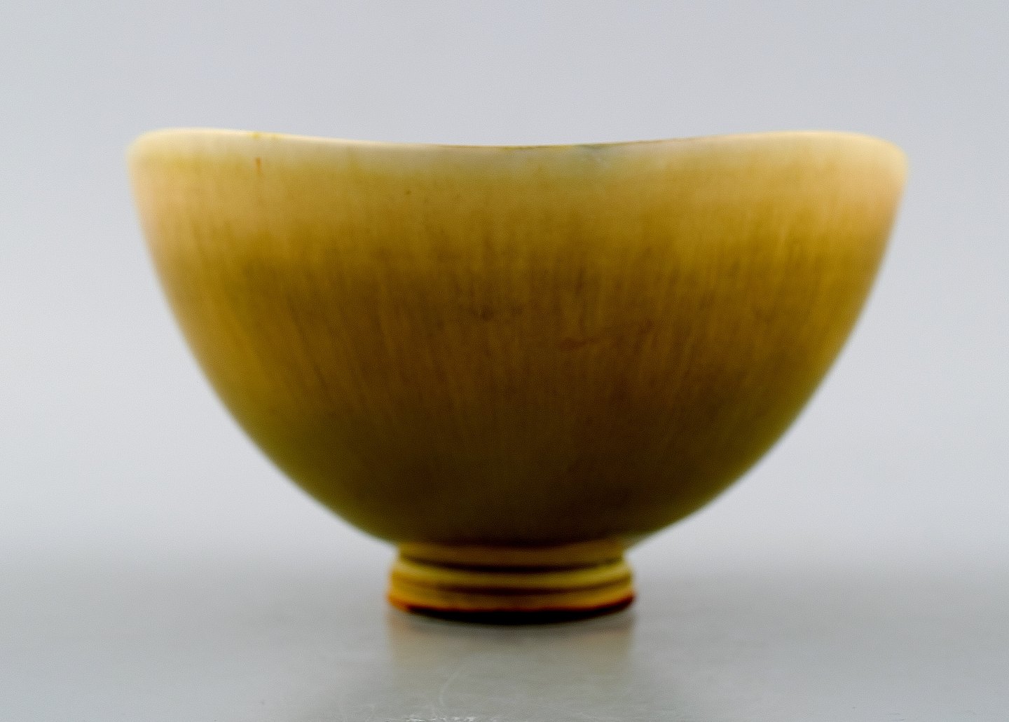 Berndt Friberg (1899-1981), Gustavsberg Studio Hand Ceramic Bowl, beautiful glaze in shades of yellow. Stamped ö = 1958. Measures: 11 x 7 cm. In perfect condition.