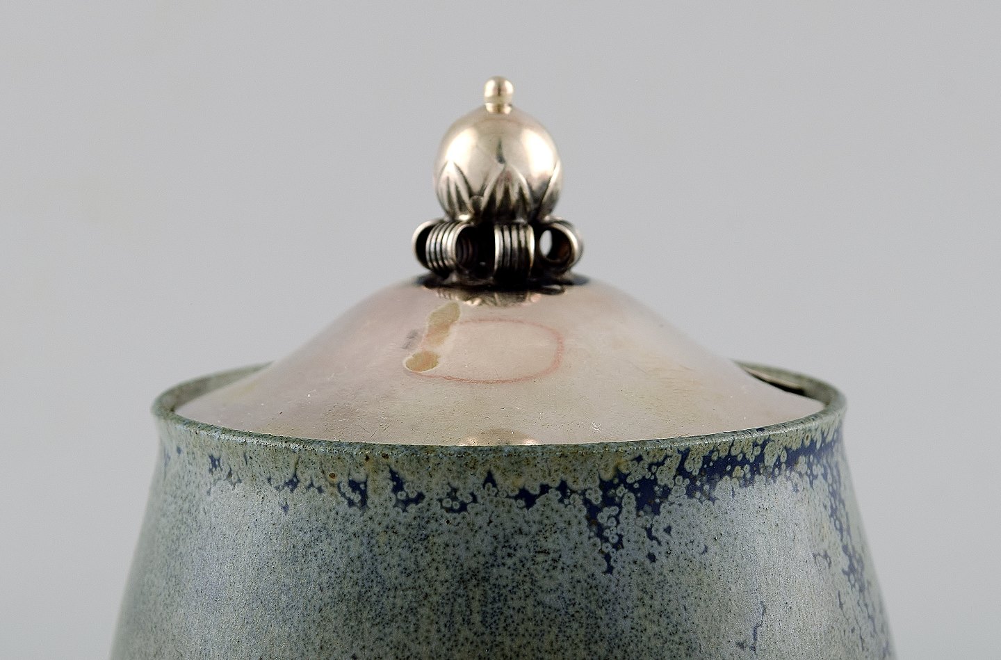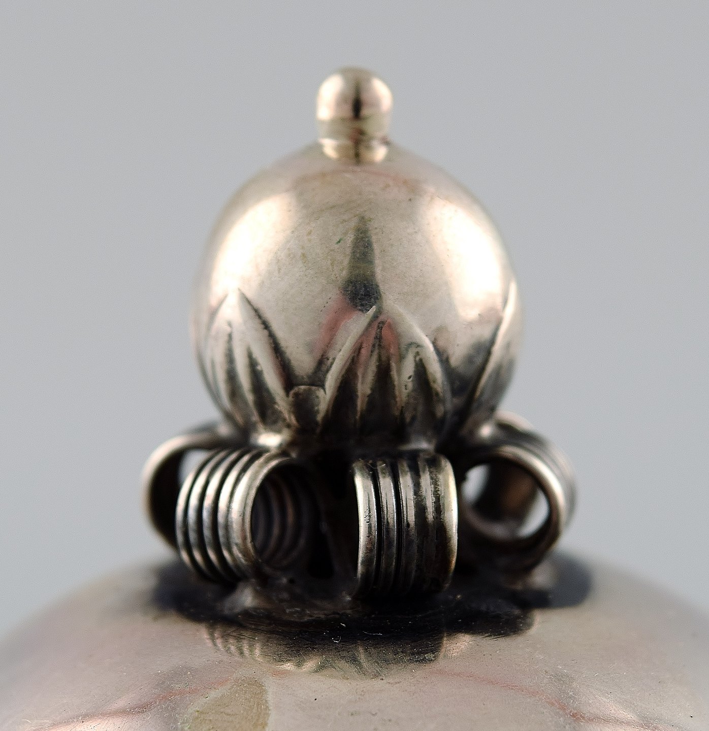 Lid and spoon in sterling silver.
