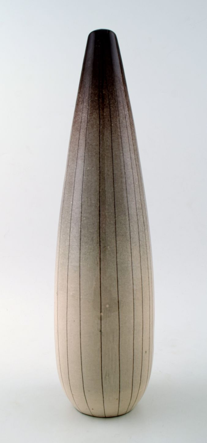 Vicke Lindstrand, vase i keramik. Upsala-Ekeby. Signeret. Nummer 3080. I perfekt stand. Måler 33 x 10 cm.