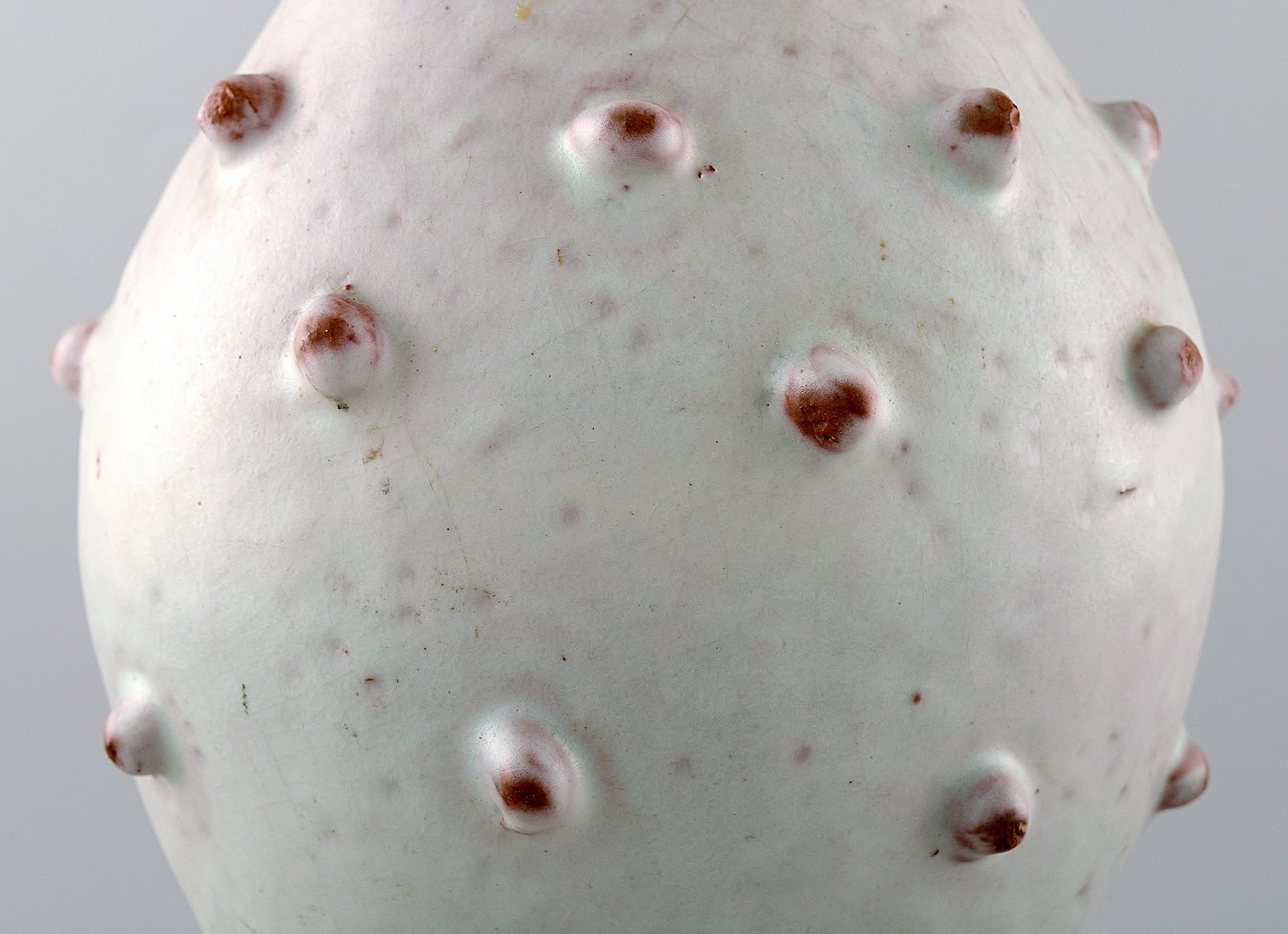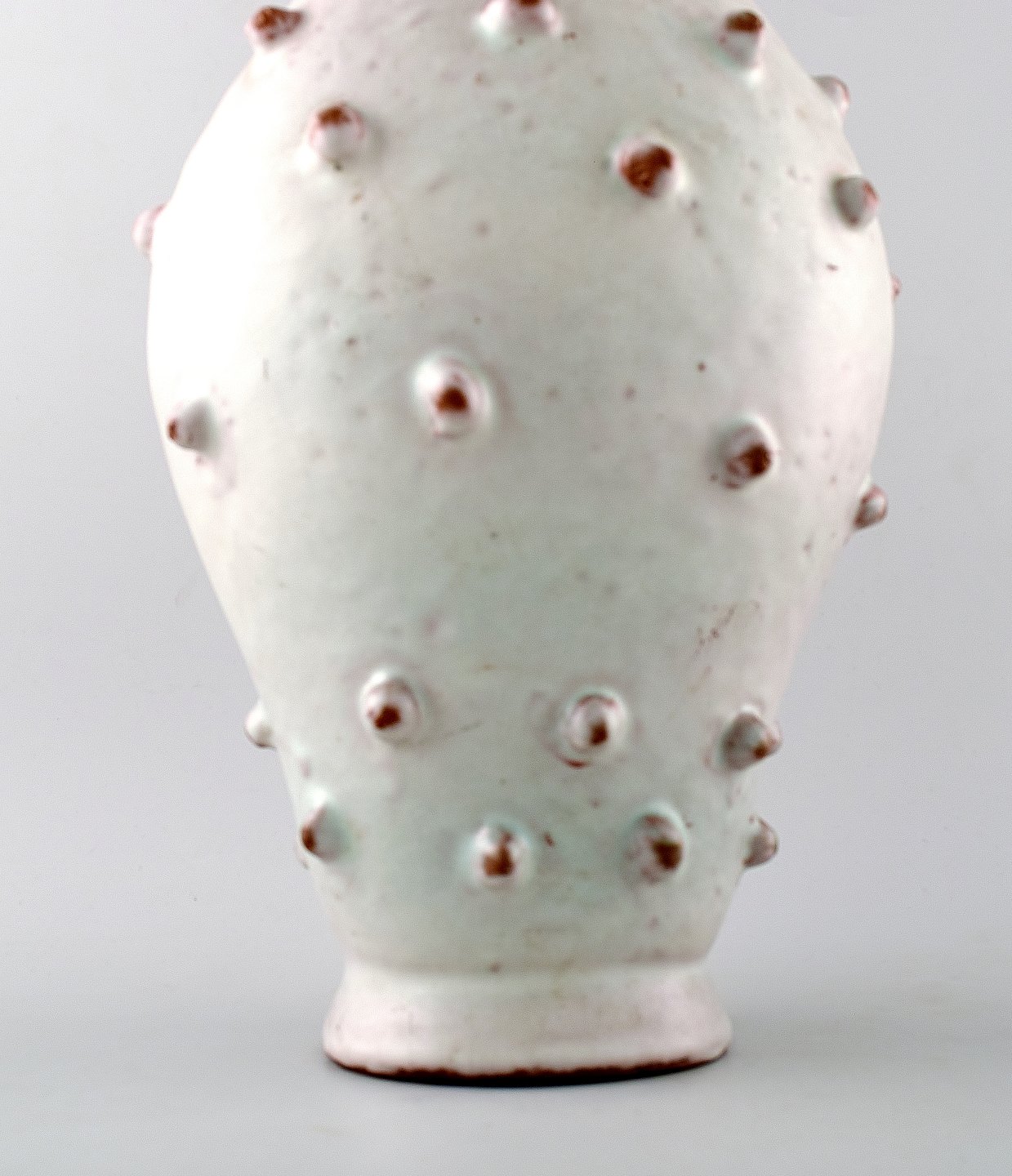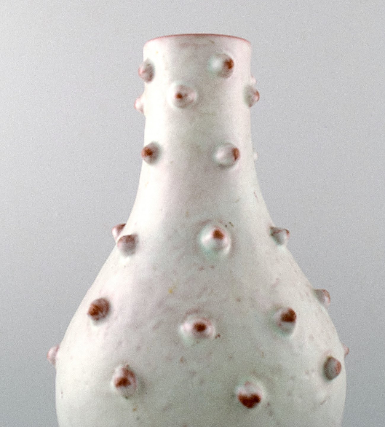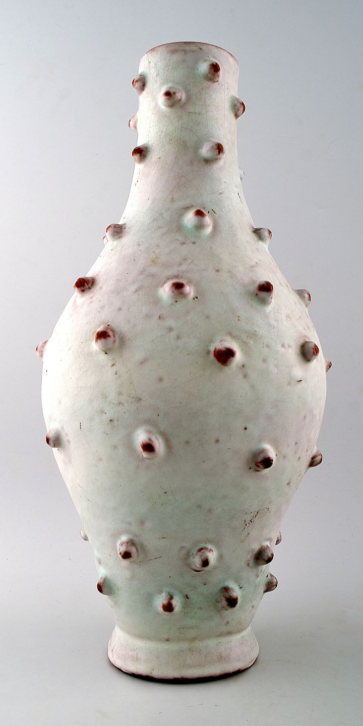Stor keramikvase delvist modelleret i knoppet stil. Ubekendt keramiker, 1900 tallet. Utydeligt signeret. Måler : 42 cm. x 15 cm. I perfekt stand.