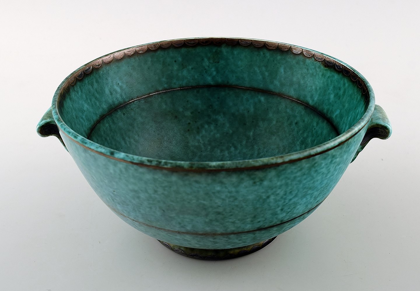 Wilhelm Kåge/Kage, Gustavsberg, Argenta Art deco bowl. Measures 19 cm. x 9 cm. Stamped Gustavsberg, Argenta 856. In perfect condition.
