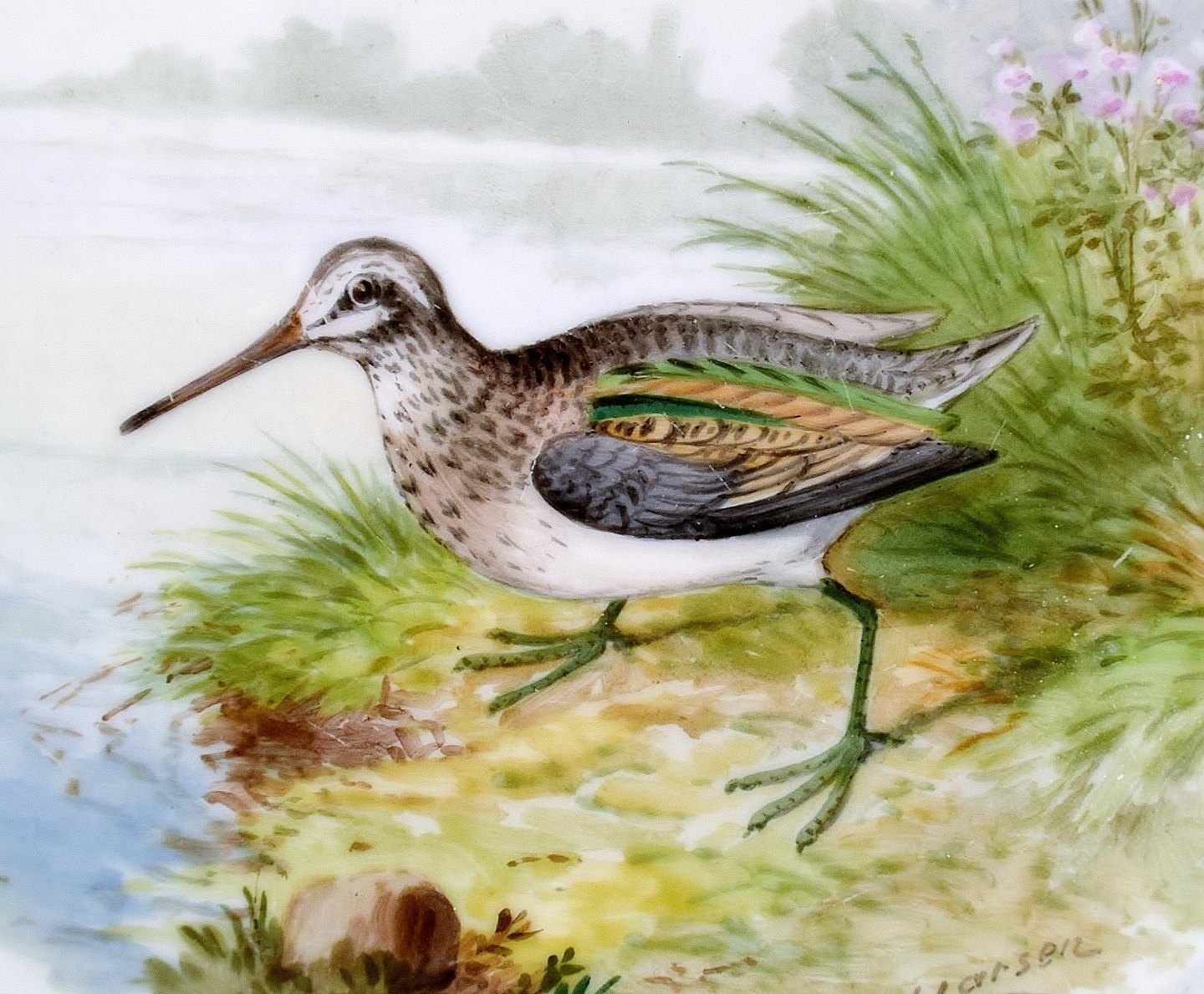 Royal Copenhagen flora Danica/fauna danica middagstallerken med motiv af fugl i landskab. Flot malet. 25,5 cm. i diameter. 1. sortering, i perfekt stand. Modelnummer 239/3549.
