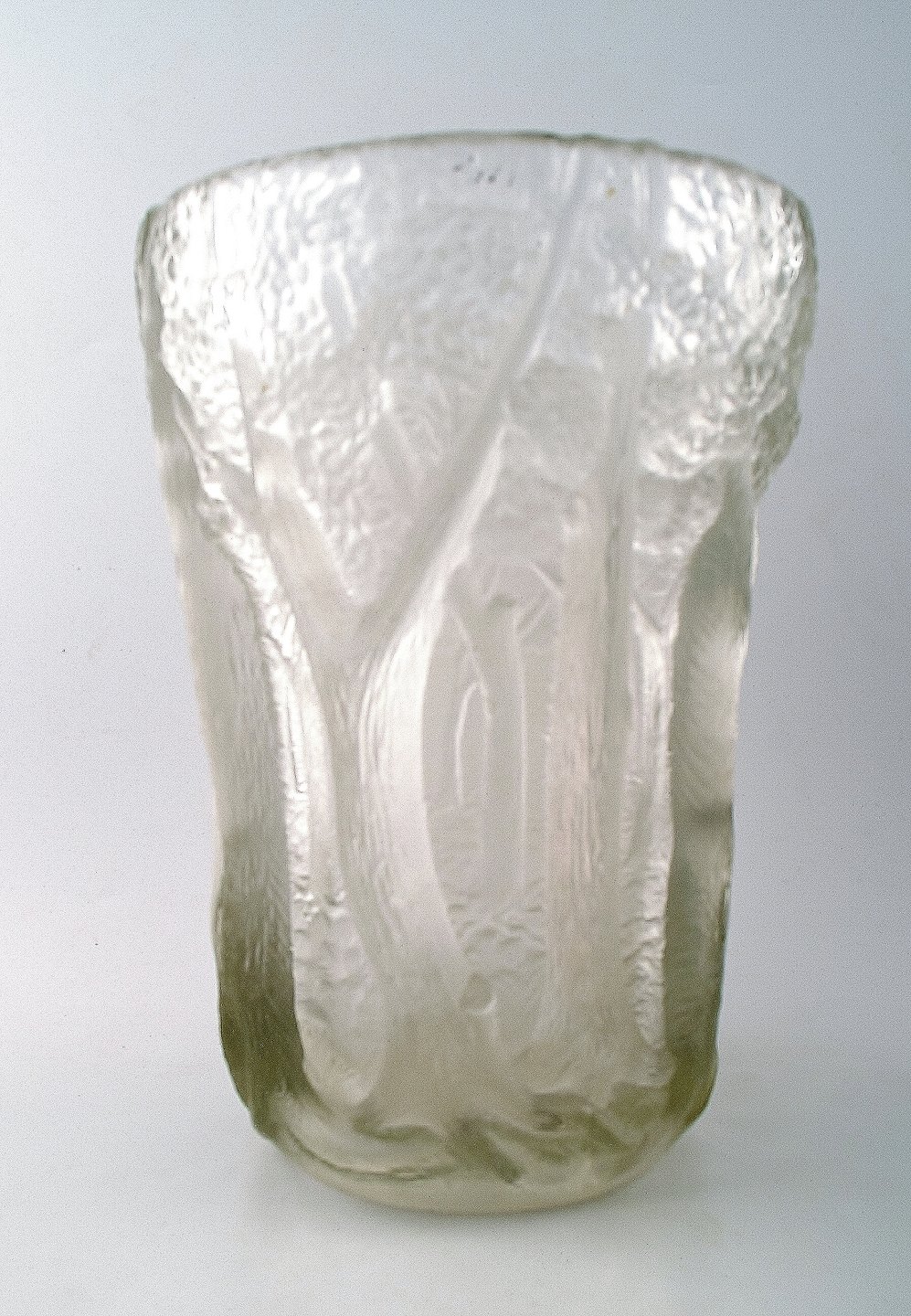 Fransk Art Deco kunstglasvase, træer i relief. Måler : 26 cm. x 18 cm. 1940/50´erne. I flot stand. Ustemplet.