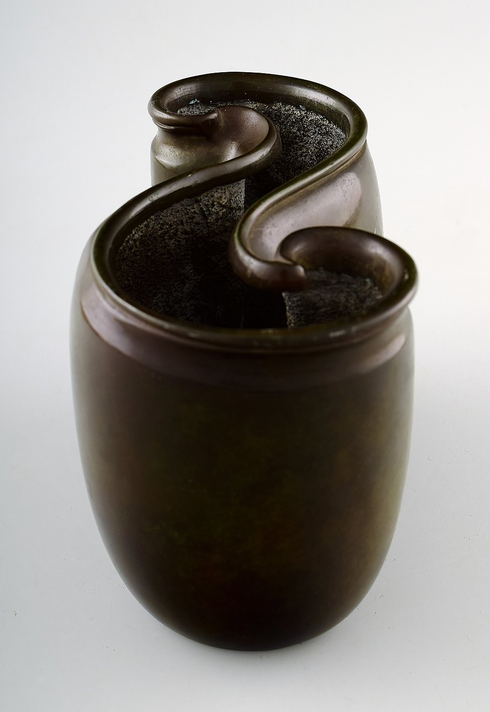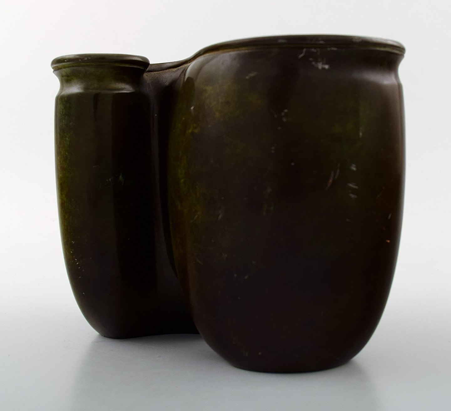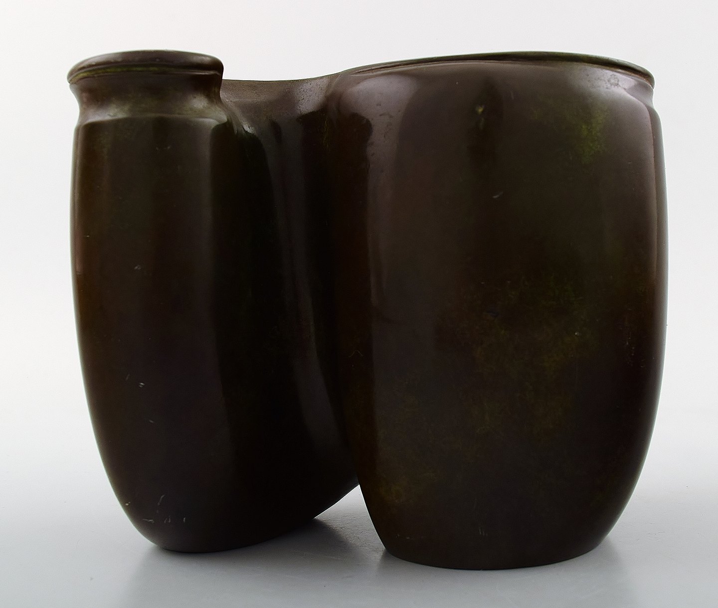 Sjælden vase i diskometal fra Ib Just Andersen´s (1884-1943) værksted ca. 1930. Smukt grønlig bronzepatinering.