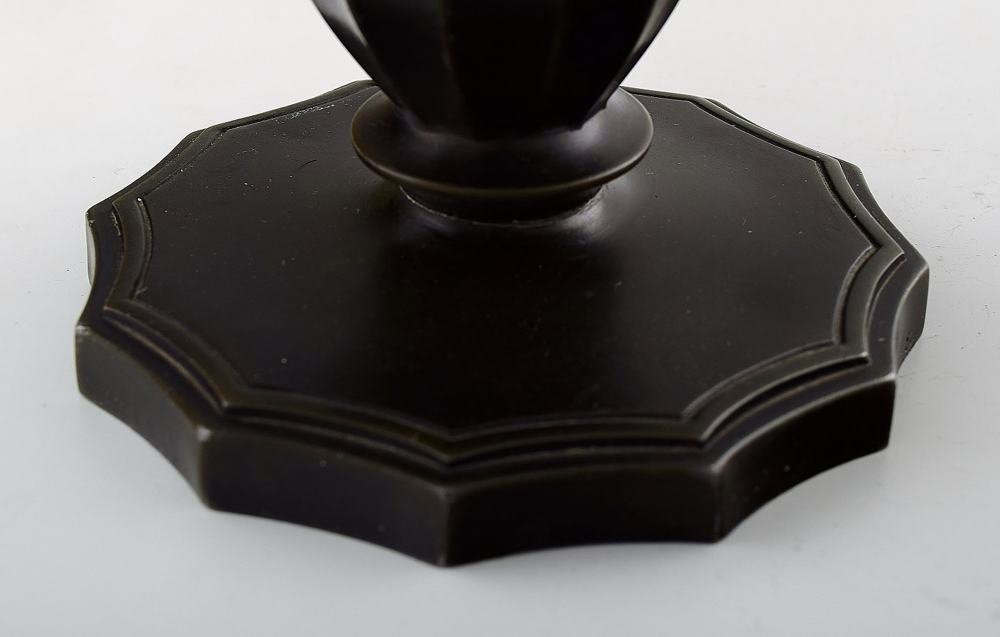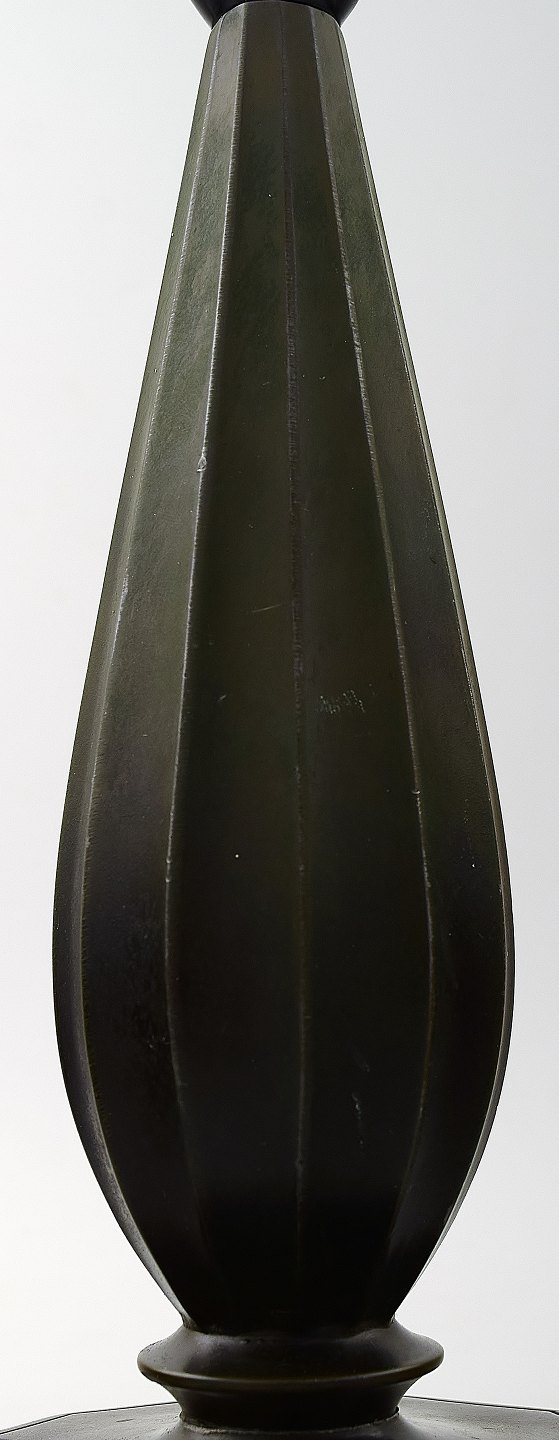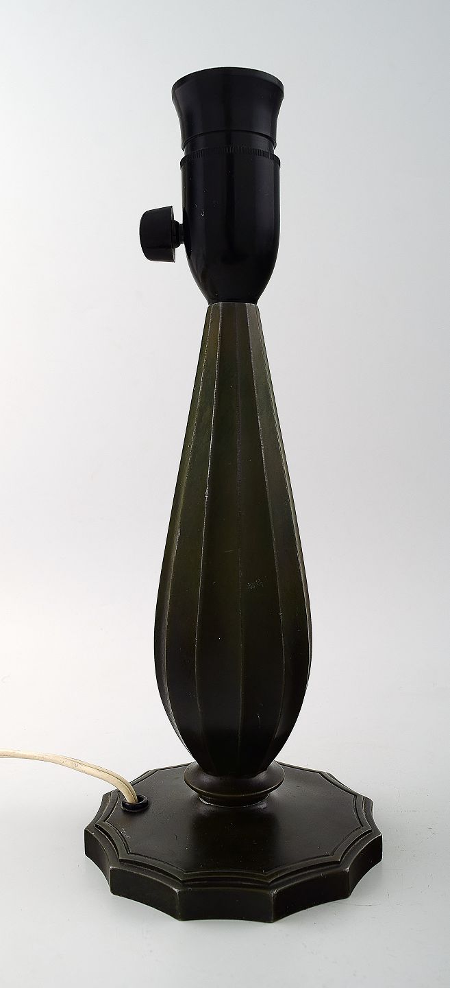 Just Andersen table lamp - Denmark 1940s. Lamp base made of patinated disko metal. Stamped Just A No. 2099 - Denmark Height 21.5 cm. (Without lampshade holder and socket) Good condition and fine patina.