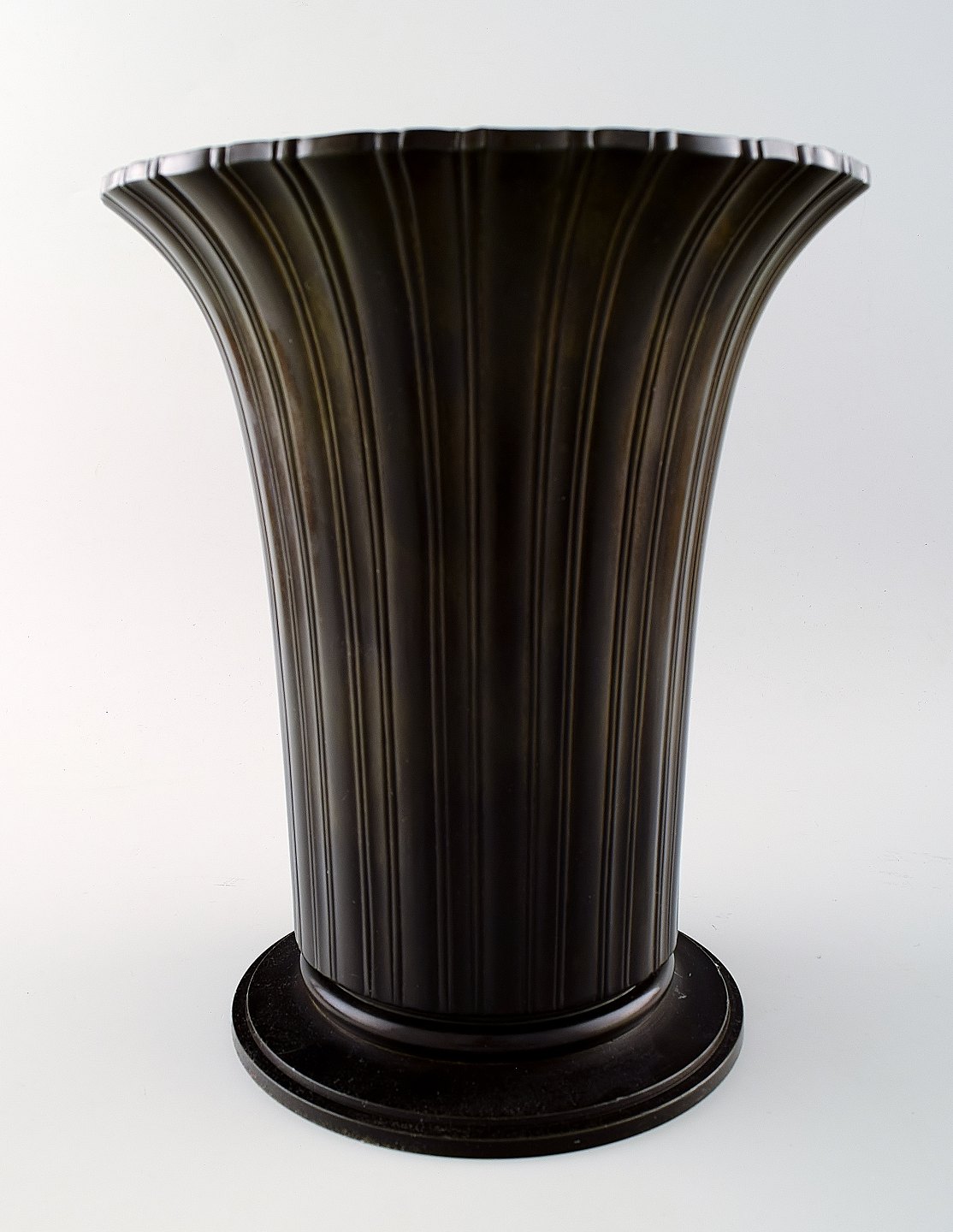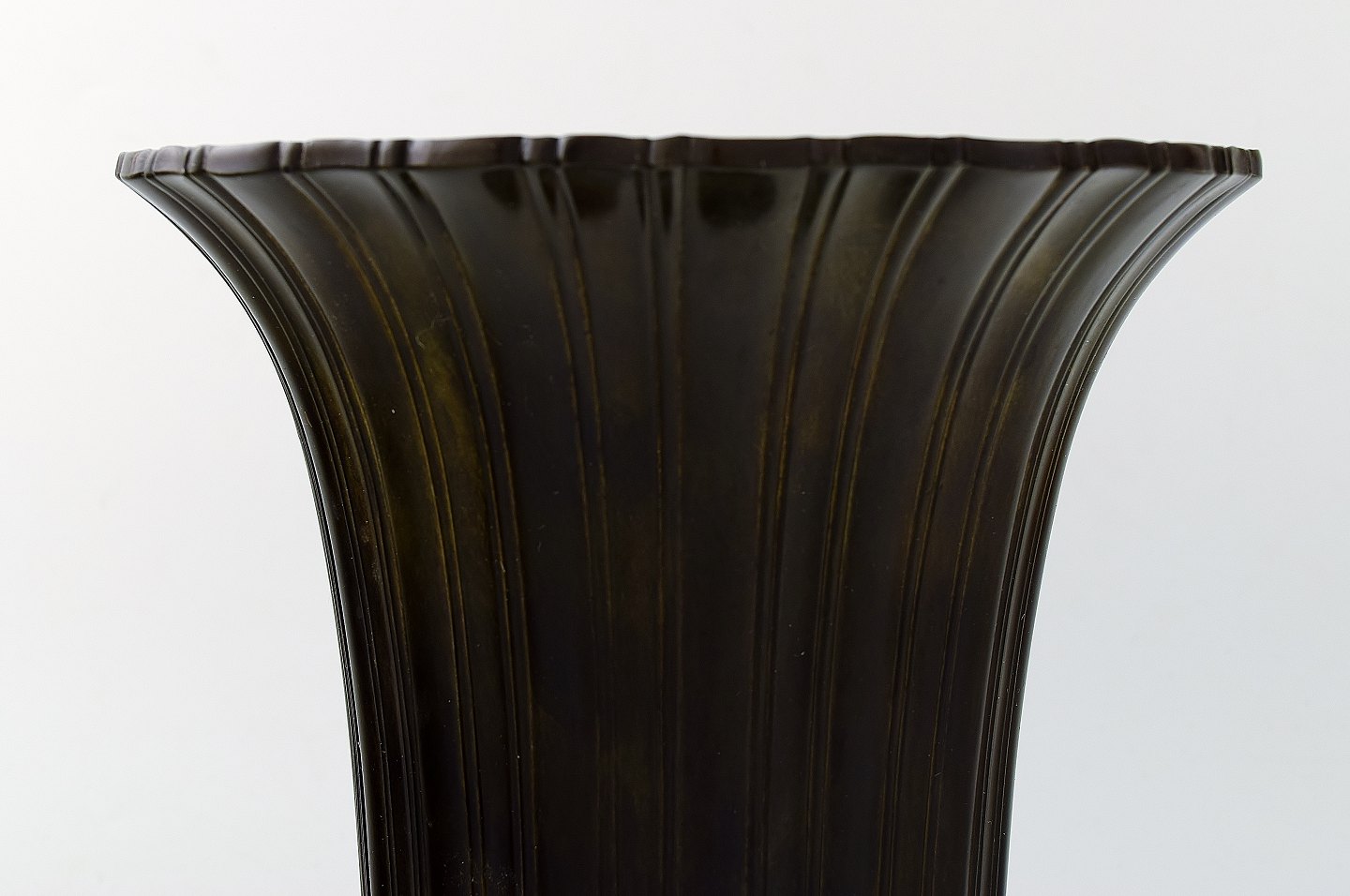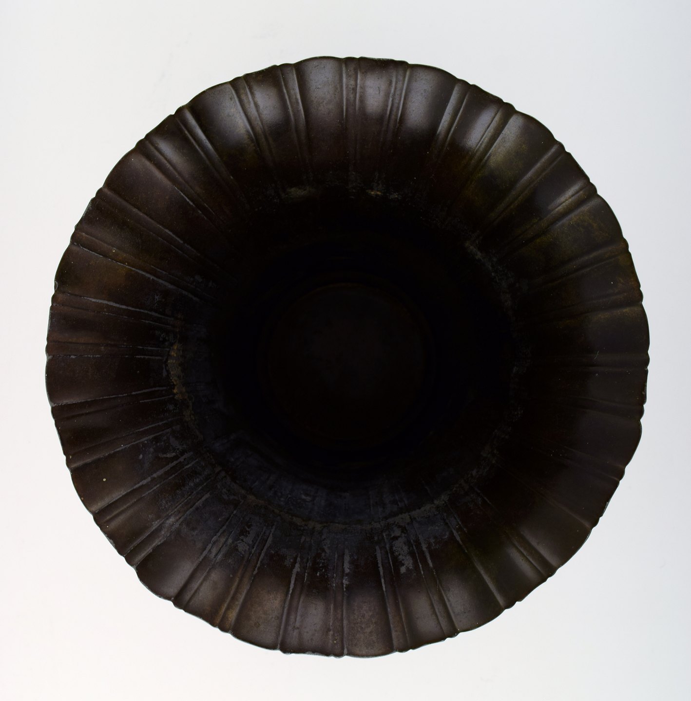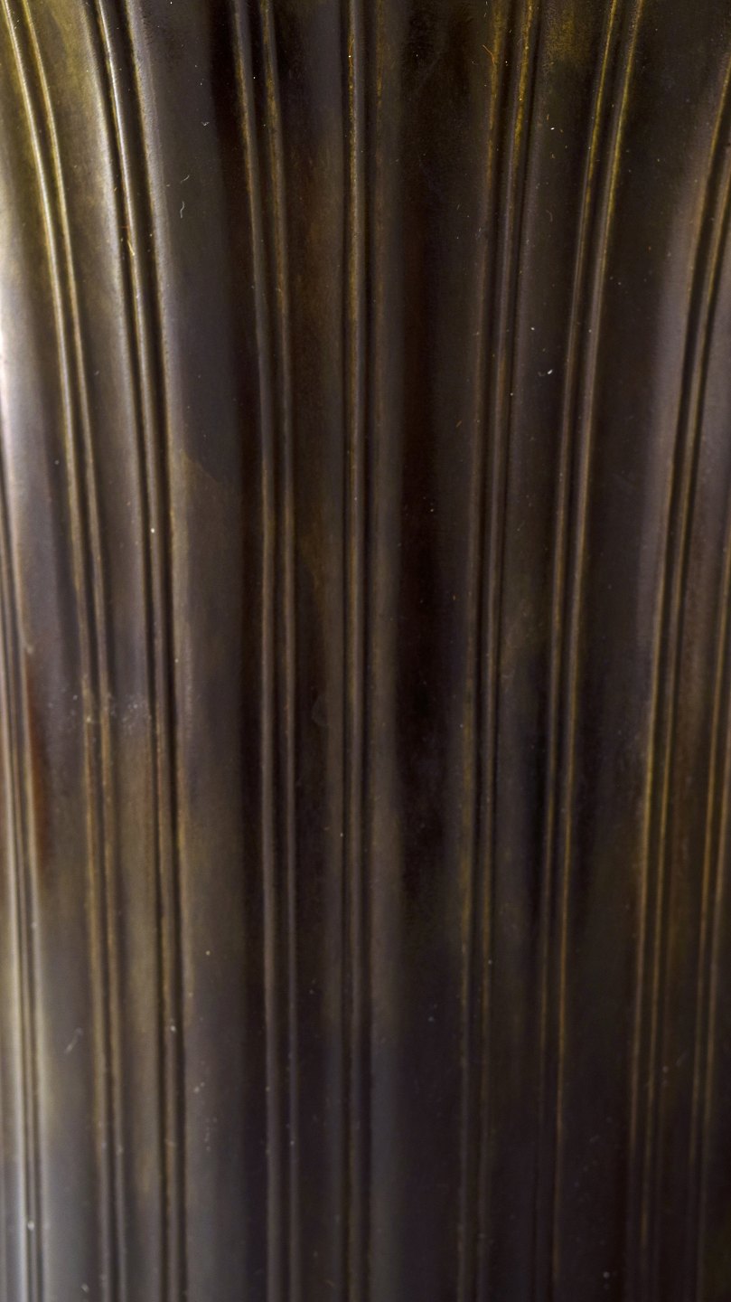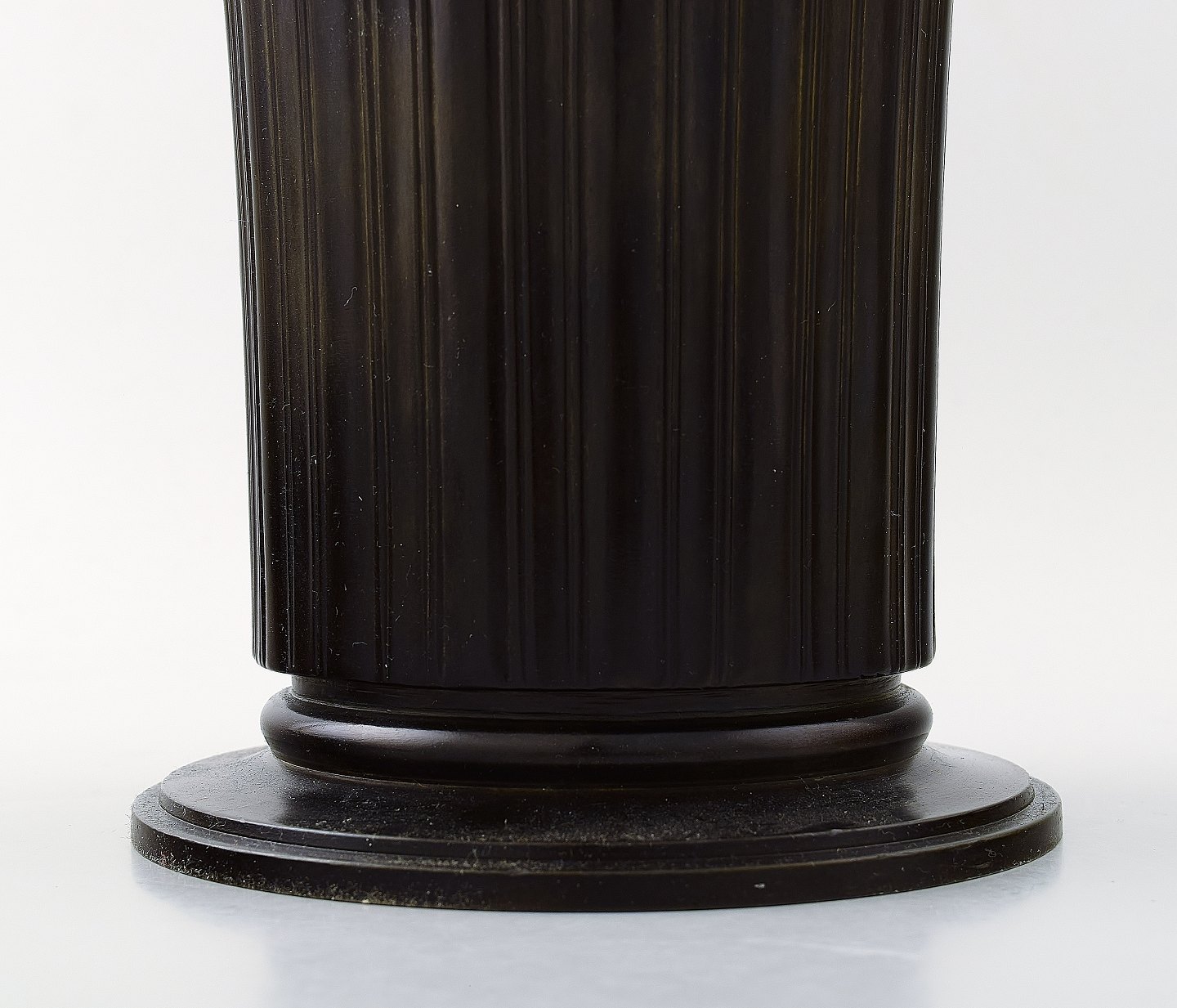 Et par vaser af patineret diskometal, støbt med vertikalt riflet mønster.
