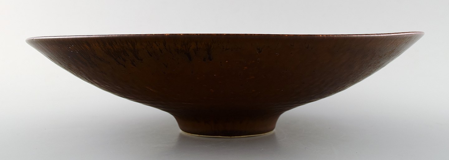 Carl-Harry Stålhane, Rørstrand/Rorstrand, large stoneware bowl. Beautiful glaze in shades of brown. Length 30 cm. 8 cm. high. In perfect condition, 2nd factory quality.