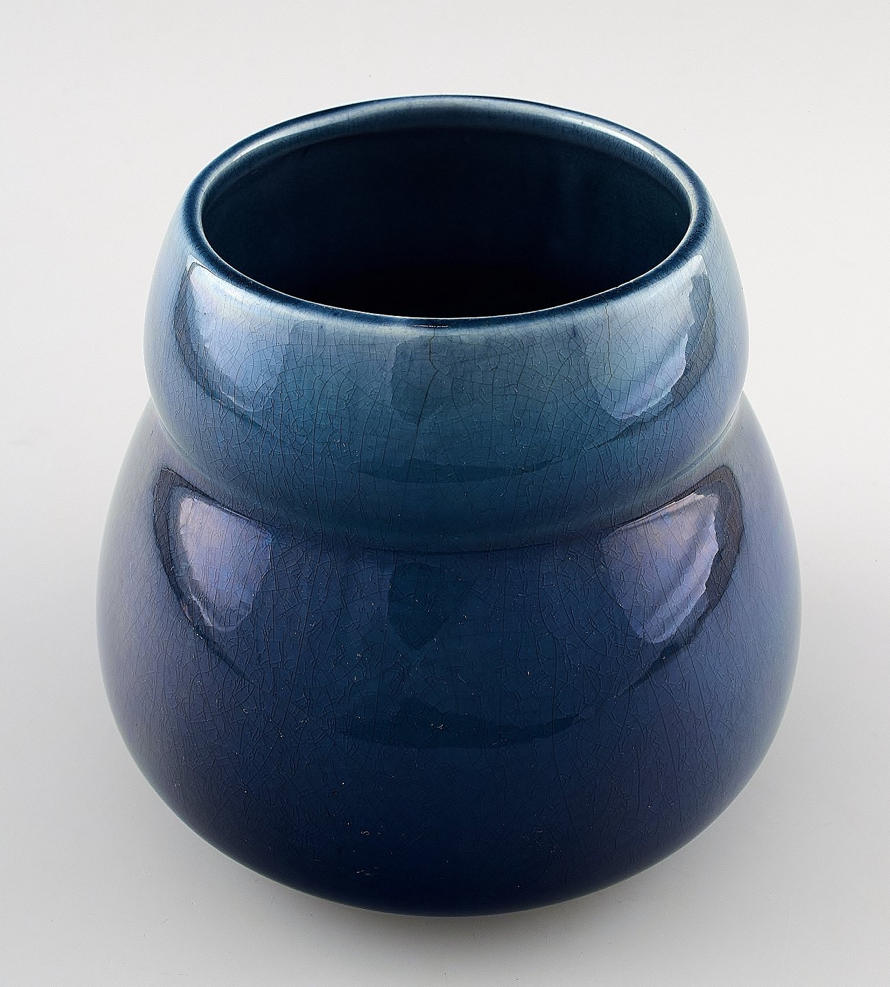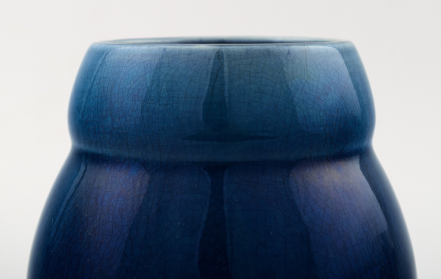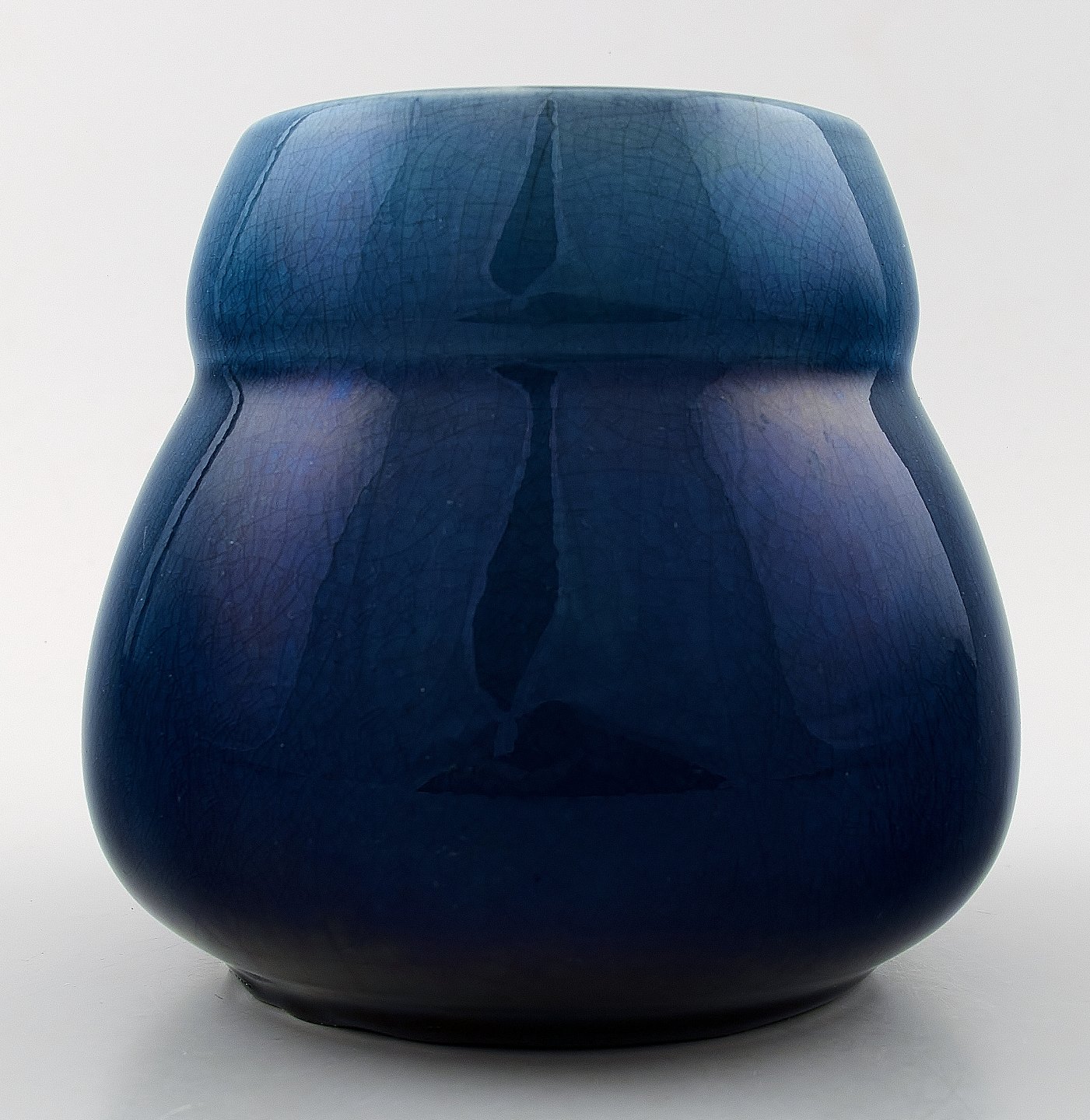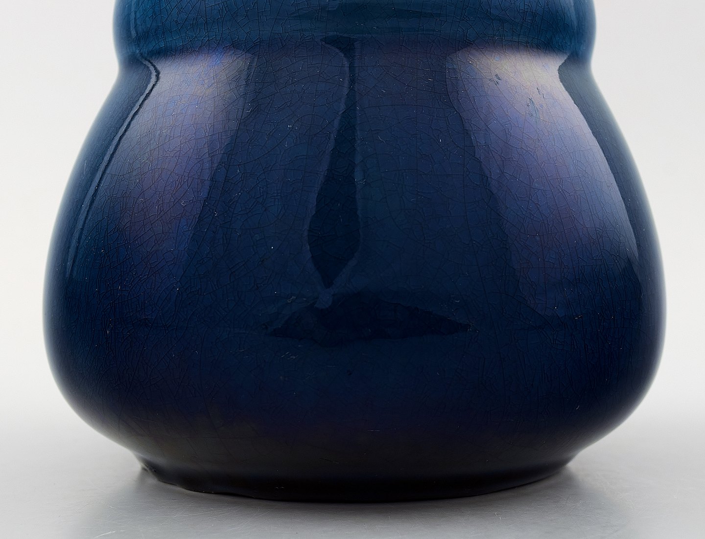 A pair of Rörstrand Art deco lidded vases in dark blue faience. Sweden 1930 / 40s. Measures 12.5 and 12.5 cm. In perfect condition. Marked.