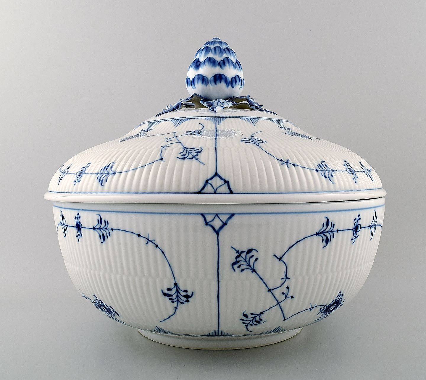 Monumental Kgl.P / Royal Copenhagen. Musselmalet Jubilæumsbowle af porcelæn, 1775-2000 (225 års jubilæum)