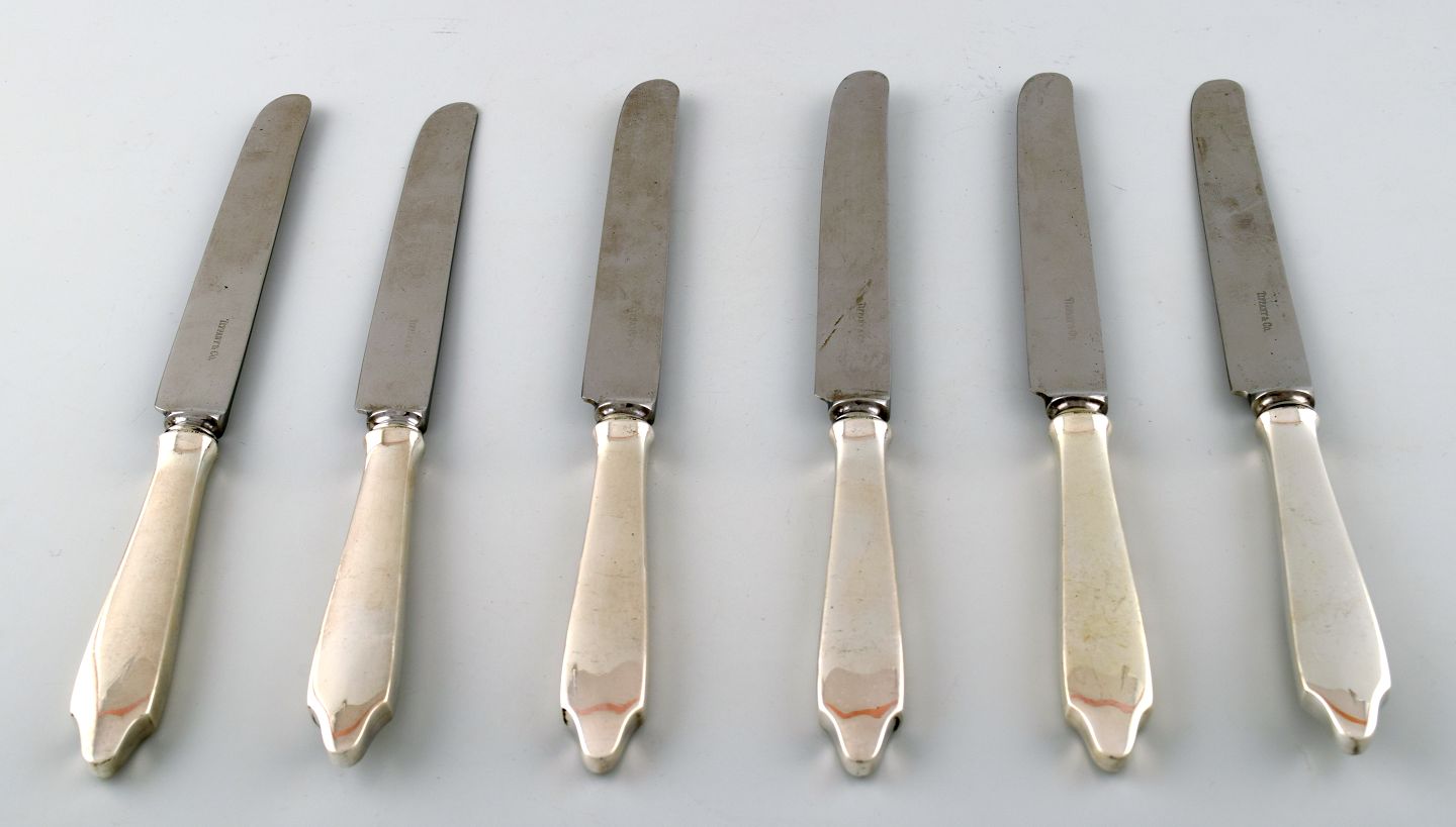 6 knives. Tiffany & Co., New York, dinner knives in silver. In very good condition. Stamped, early 20c. Measures 23.5 cm.
