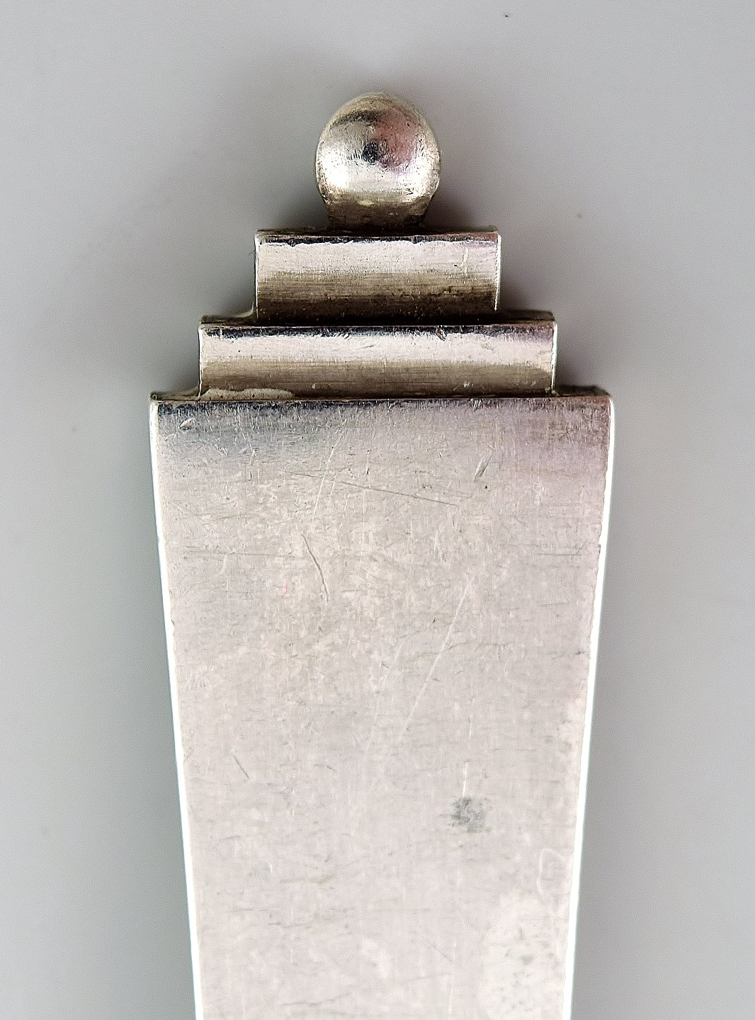 3 Georg Jensen Pyramide dessertske. Designet af Harald Nielsen 1933-44. I perfekt stand. Måler 18 cm.