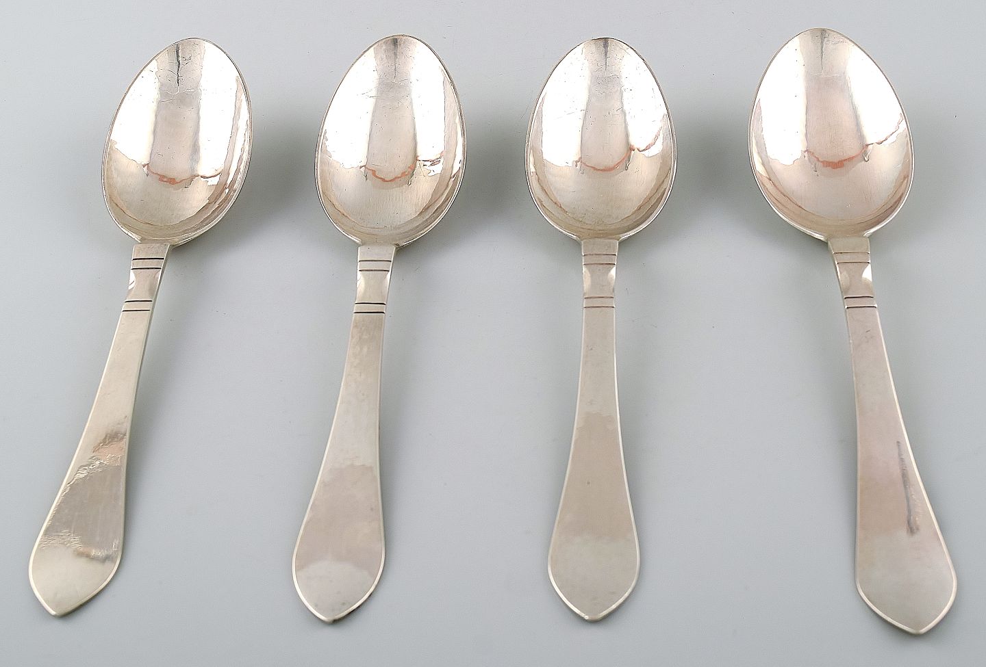 Georg Jensen. Continental (Antik) 4 spiseskeer, sølvbestik, hammerslået. Bestikket er formgivet af Georg Jensen og designet i 1906. I perfekt stand. Måler : 20 cm.