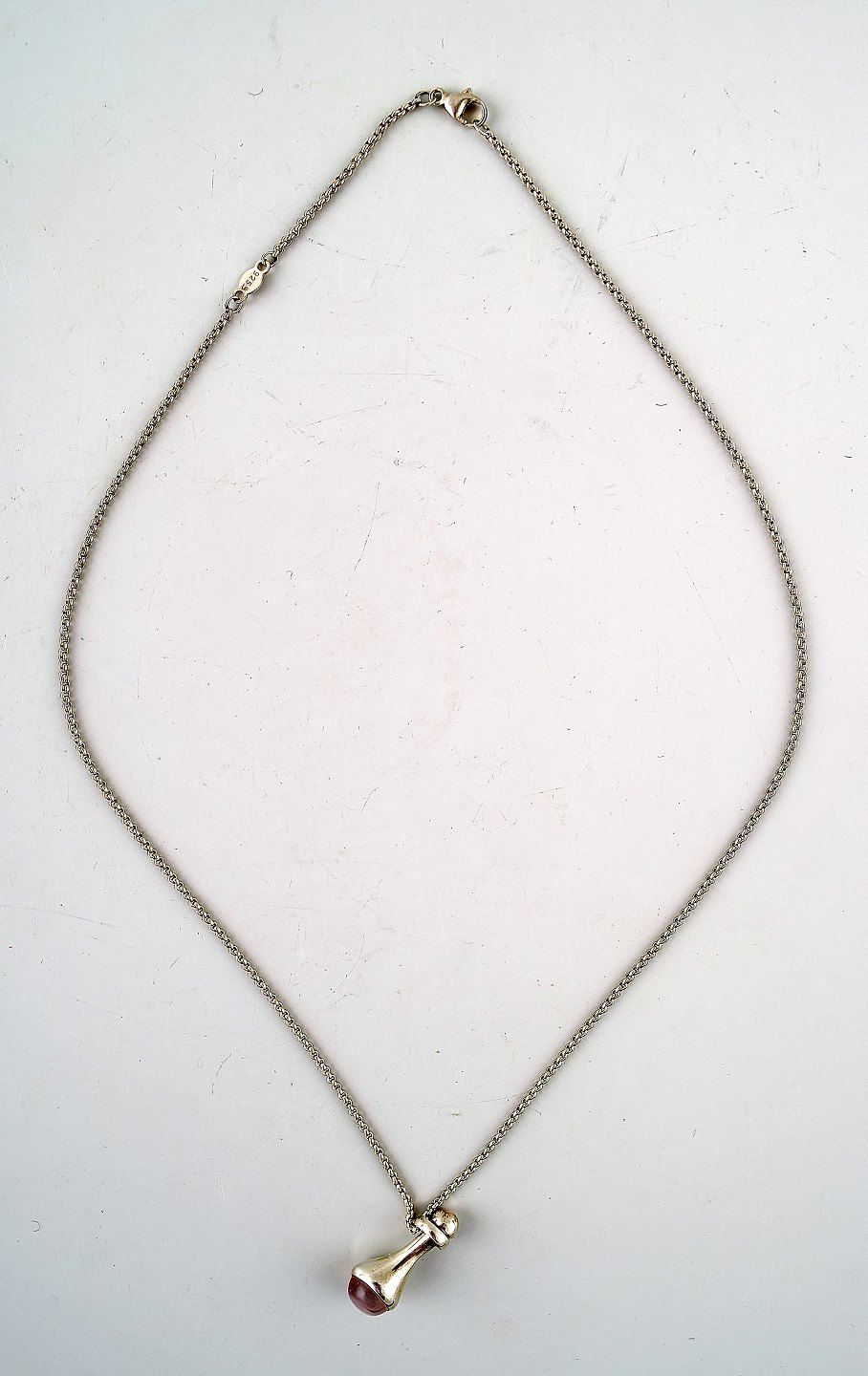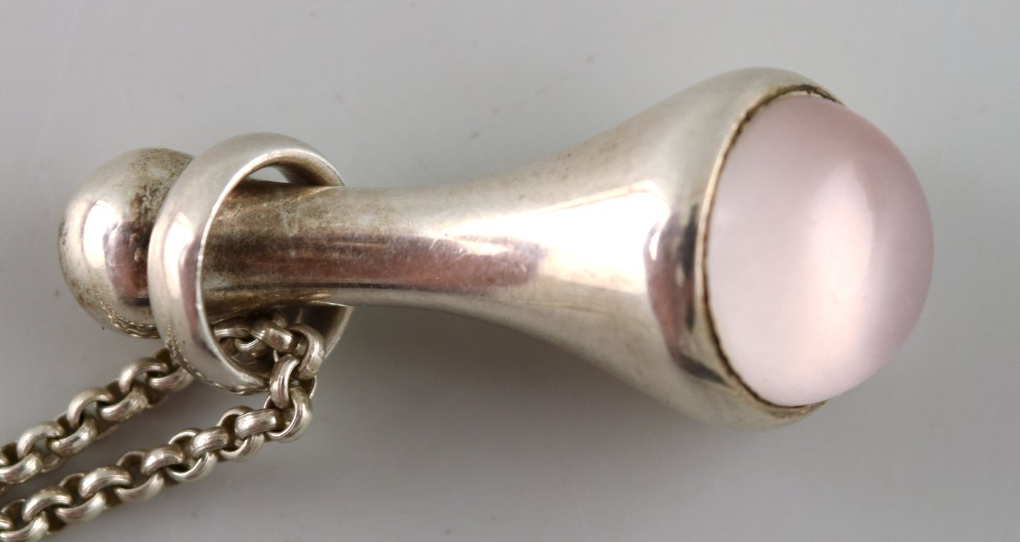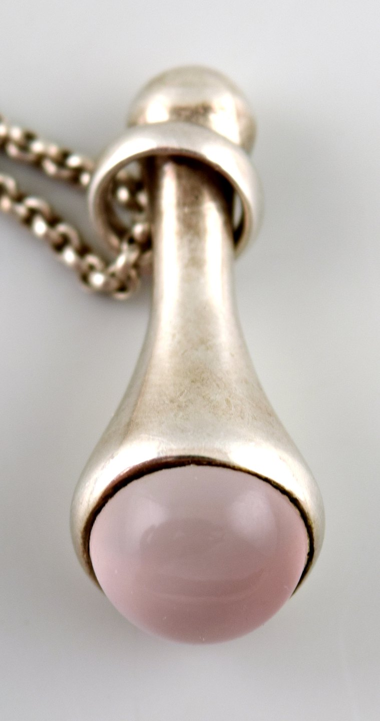 Georg Jensen: Necklace, model Droplet, 925 sterling silver, with cabochon rose quartz. Dessin no. 453. Length. about 45 cm. In perfect condition.