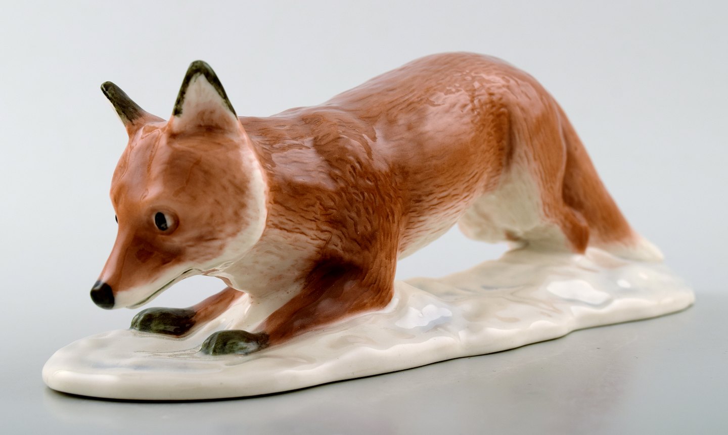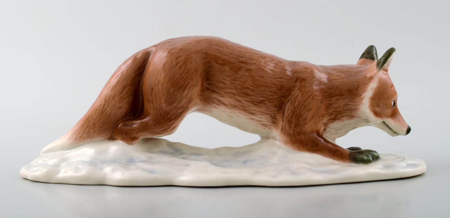Sjælden Royal Copenhagen/Kongelig Figur, Ræv. Design: Harald Wiberg Dekorationsnummer 373. 1. sortering. Højde 8 cm. Længde 21,5 cm. I perfekt stand.