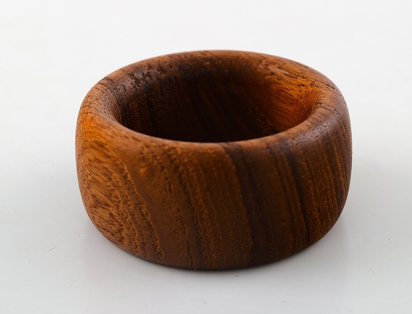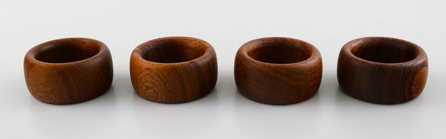 Kay Bojesen 4 napkin rings in teak. Danish design 50 s. In perfect condition. Measures: 5 cm. x 2 cm. Indistinctly stamped.