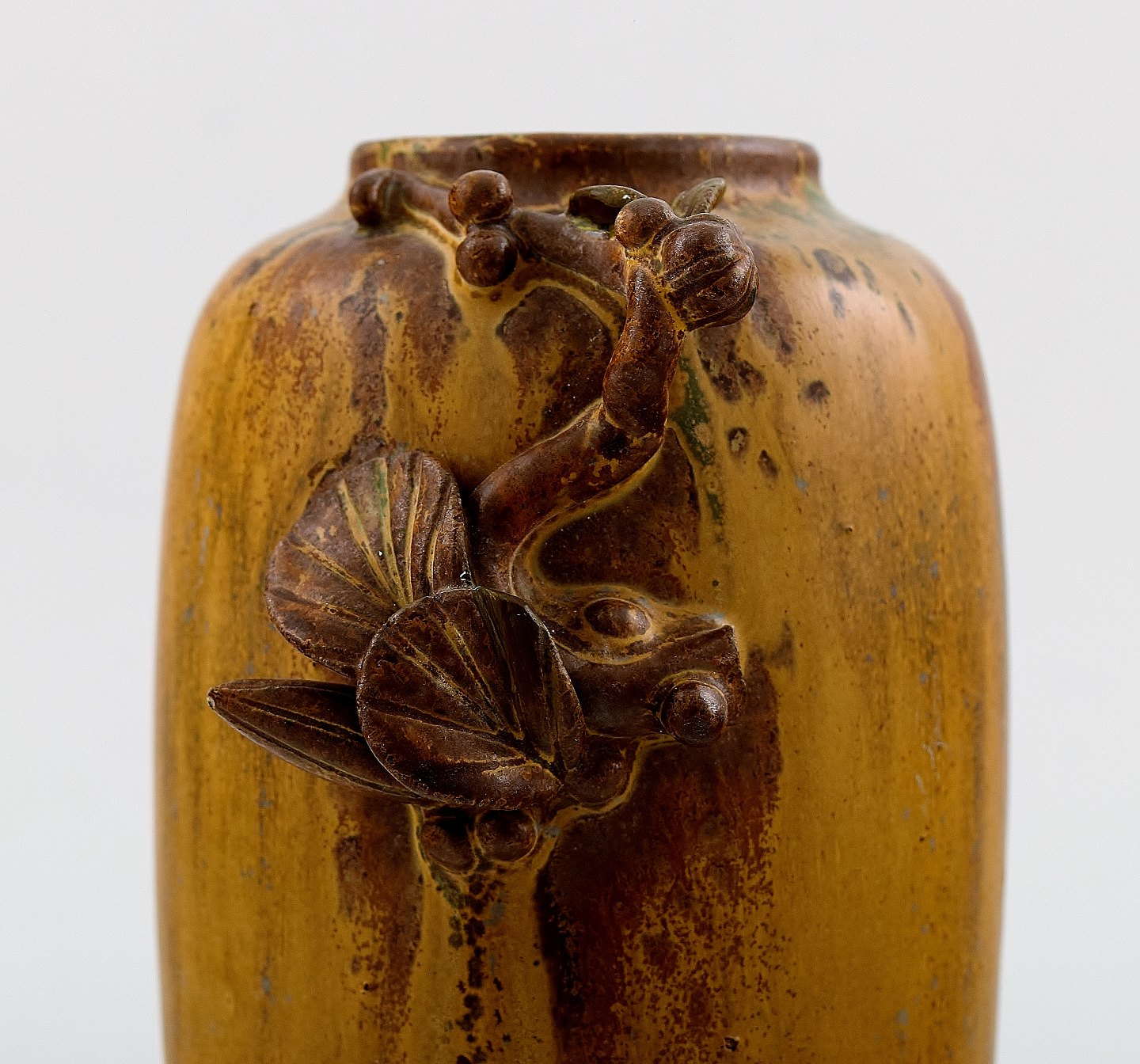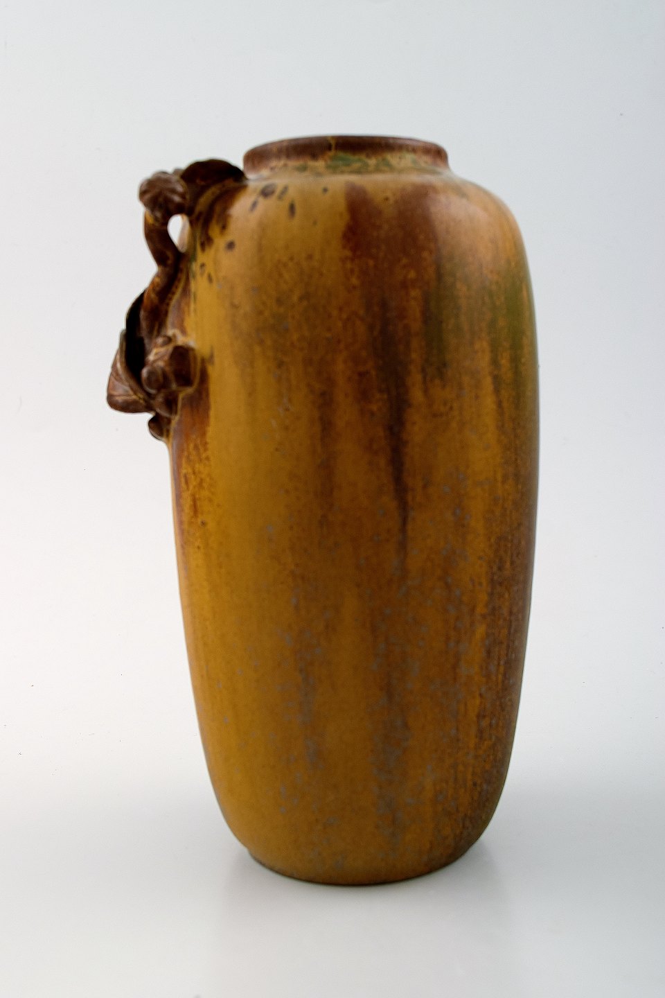 Arne Bang. Keramikvase med bladværk.