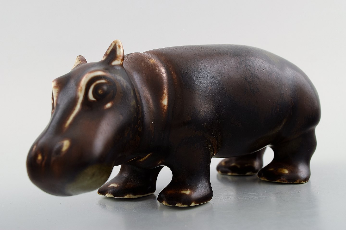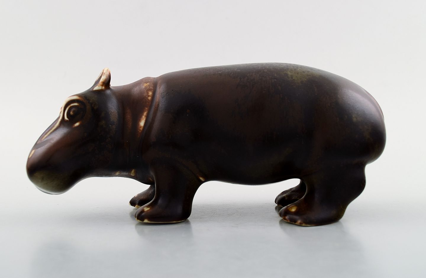 Rare Rörstrand stoneware figure of Gunnar Nylund, standing baby hippo / young hippopotamus. Sweden mid 20 c. In perfect condition. 1st. factory. Measures 18.5 x 8.5 cm.