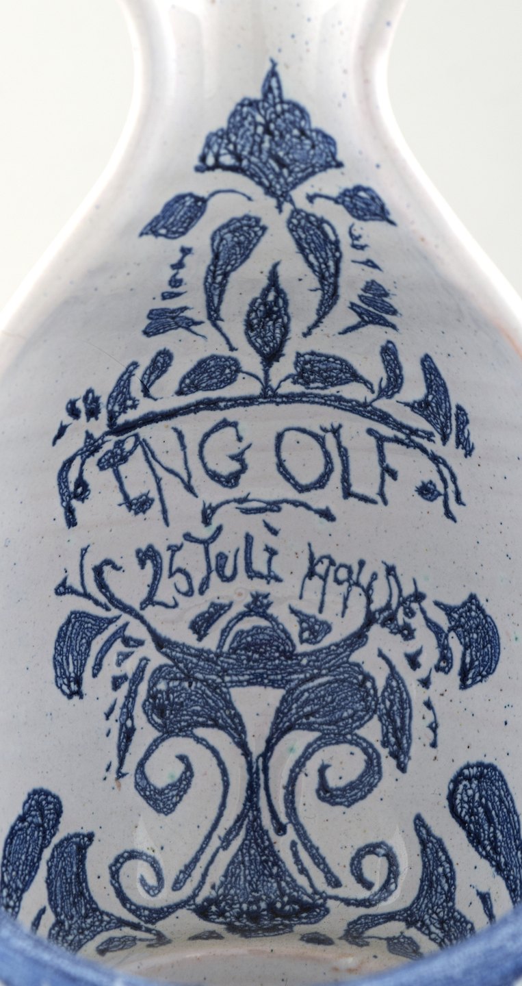Bjorn Wiinblad unique ceramic tea light holder / figure, woman. Rare. Measures: 22 x 10 cm. Signed, Ingolf 1994. In perfect condition.