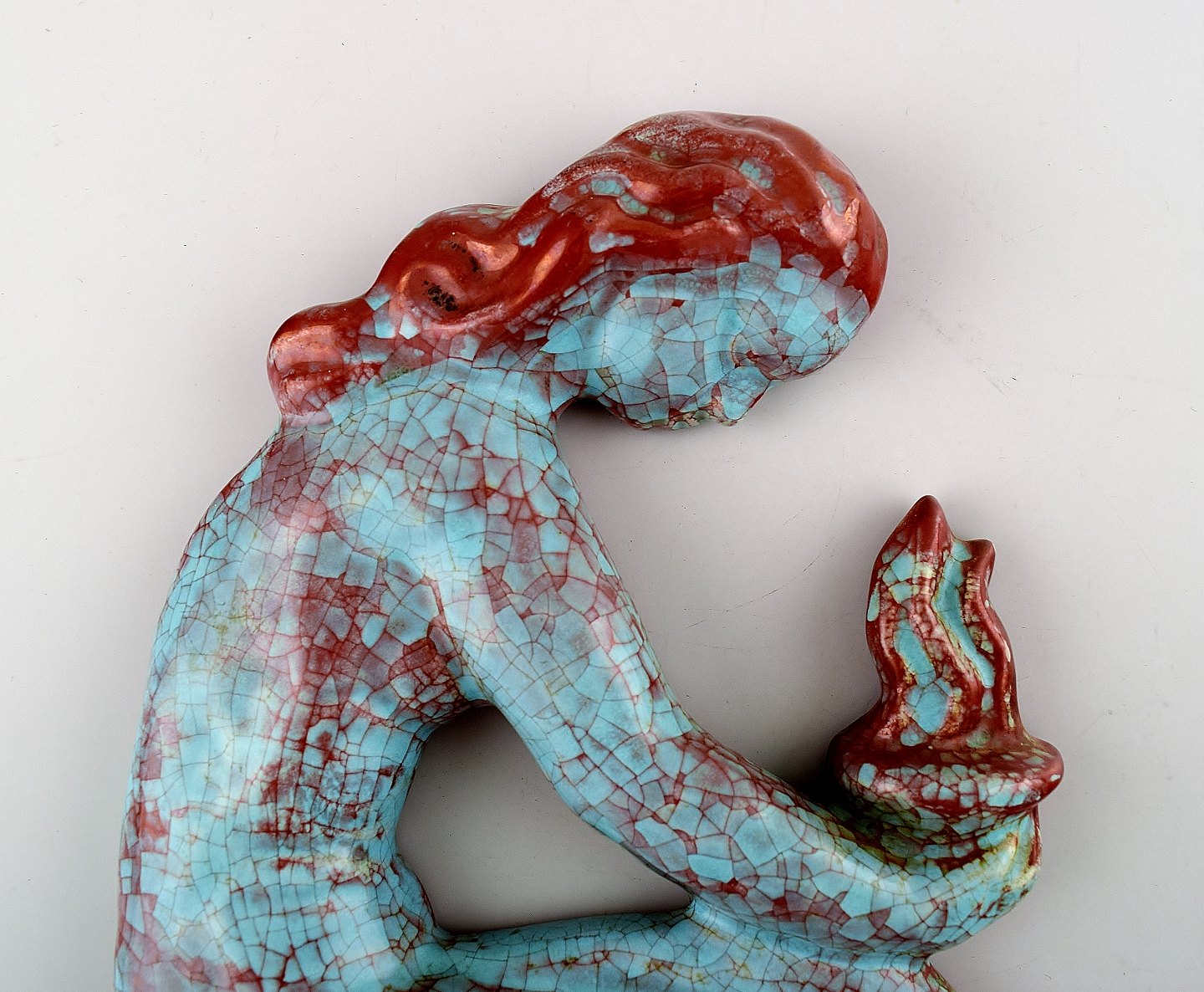 Michael Andersen keramik fra Bornholm. Relief. Ung kvinde holder flamme. Måler : 22 x 19 cm. Perfekt stand. Stemplet. Modelnummer 4854.