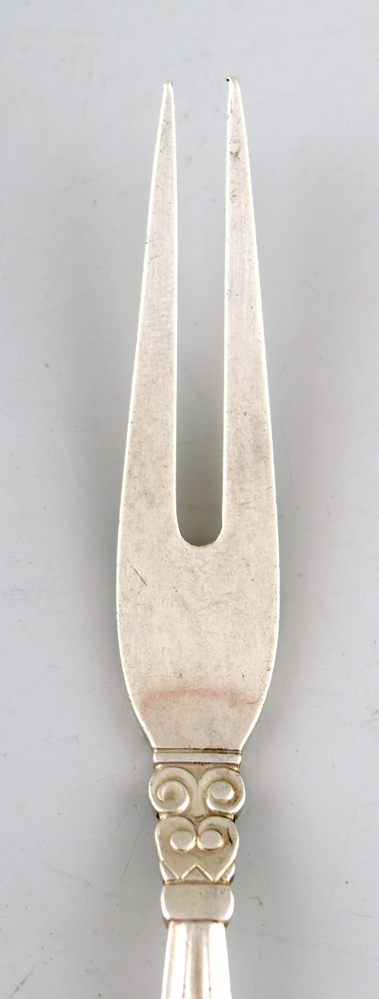 Georg Jensen "Konge". 2 sildegafler/pålægsgafler Designer: Johan Rohde. Længde: 16 cm. Sterlingsølv. Stemplet. Perfekt stand.