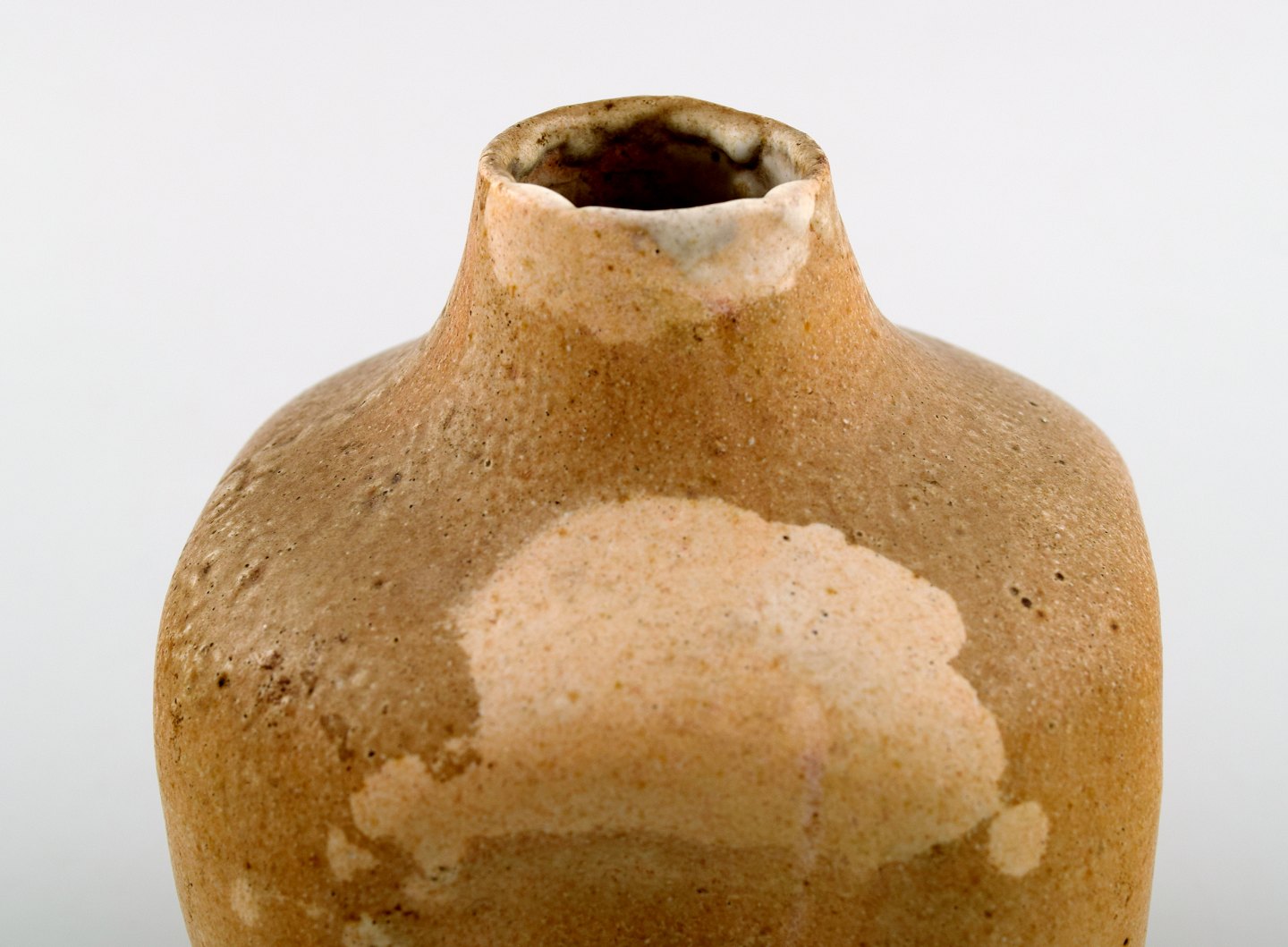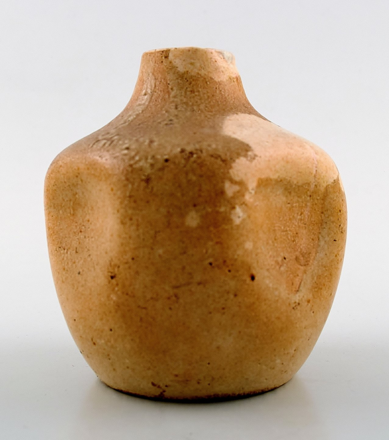 Early Unique Patrick Nordstrom, own workshop, pottery vase. Beautiful glaze in earthy colors. Signed. 1910s. Measures 10 x 8 cm. In perfect condition.