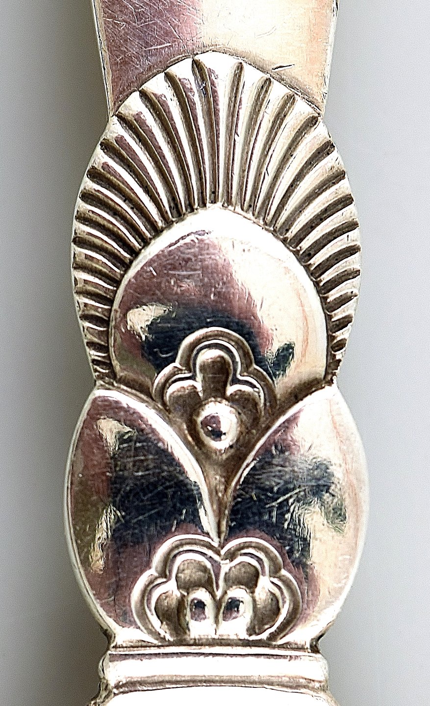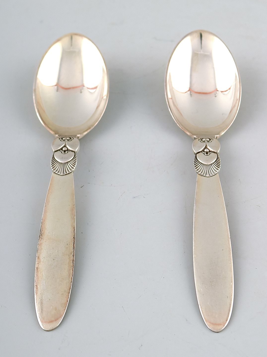 Georg Jensen Sterling Silver 'Cactus' cutlery. Dessert spoon / Child spoon. Measures 15 cm. In perfect condition. Marked. Designed by Gundorph Albertus in 1930.