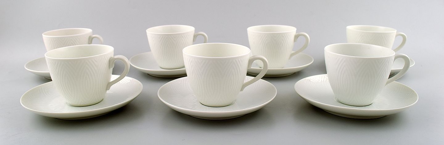 7 pairs of Royal Copenhagen Salto porcelain, White. Coffee cup and saucer 14.5 cm. Salto coffee service from Royal Copenhagen. In very good condition. Factory 1st. 7 sets in stock.