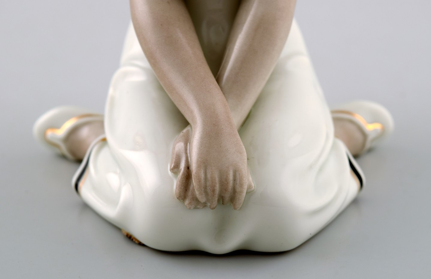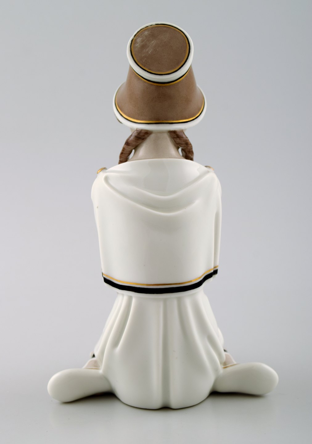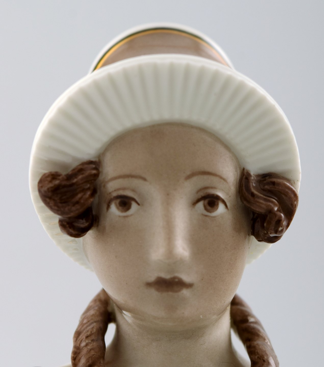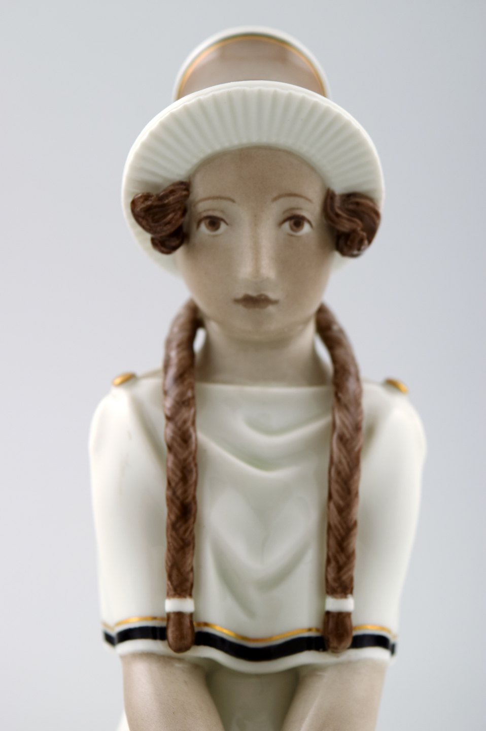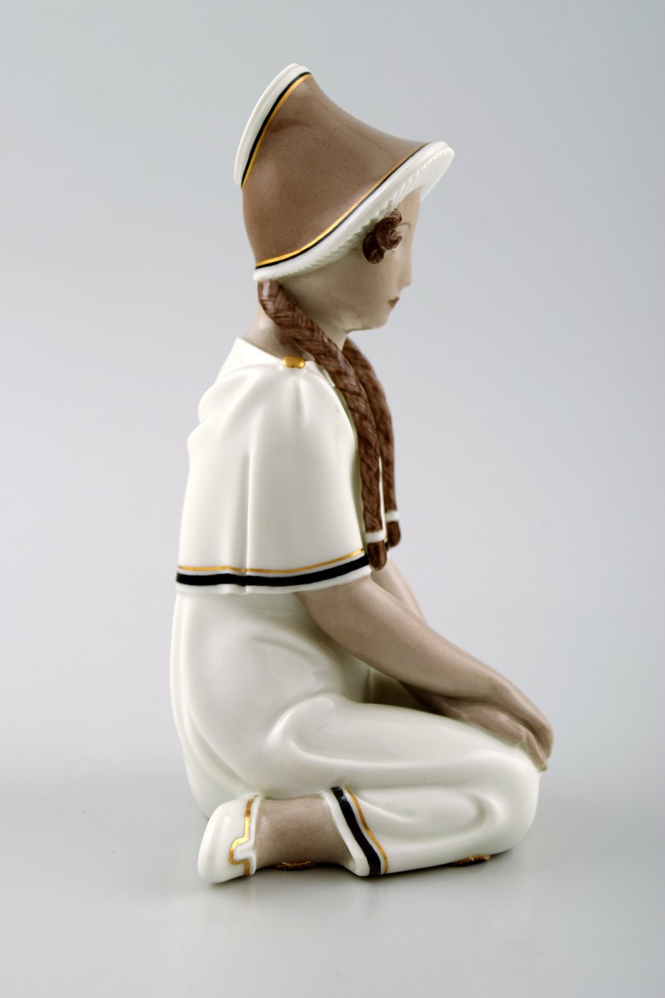 Siddende pige med fletninger. Overglasur.