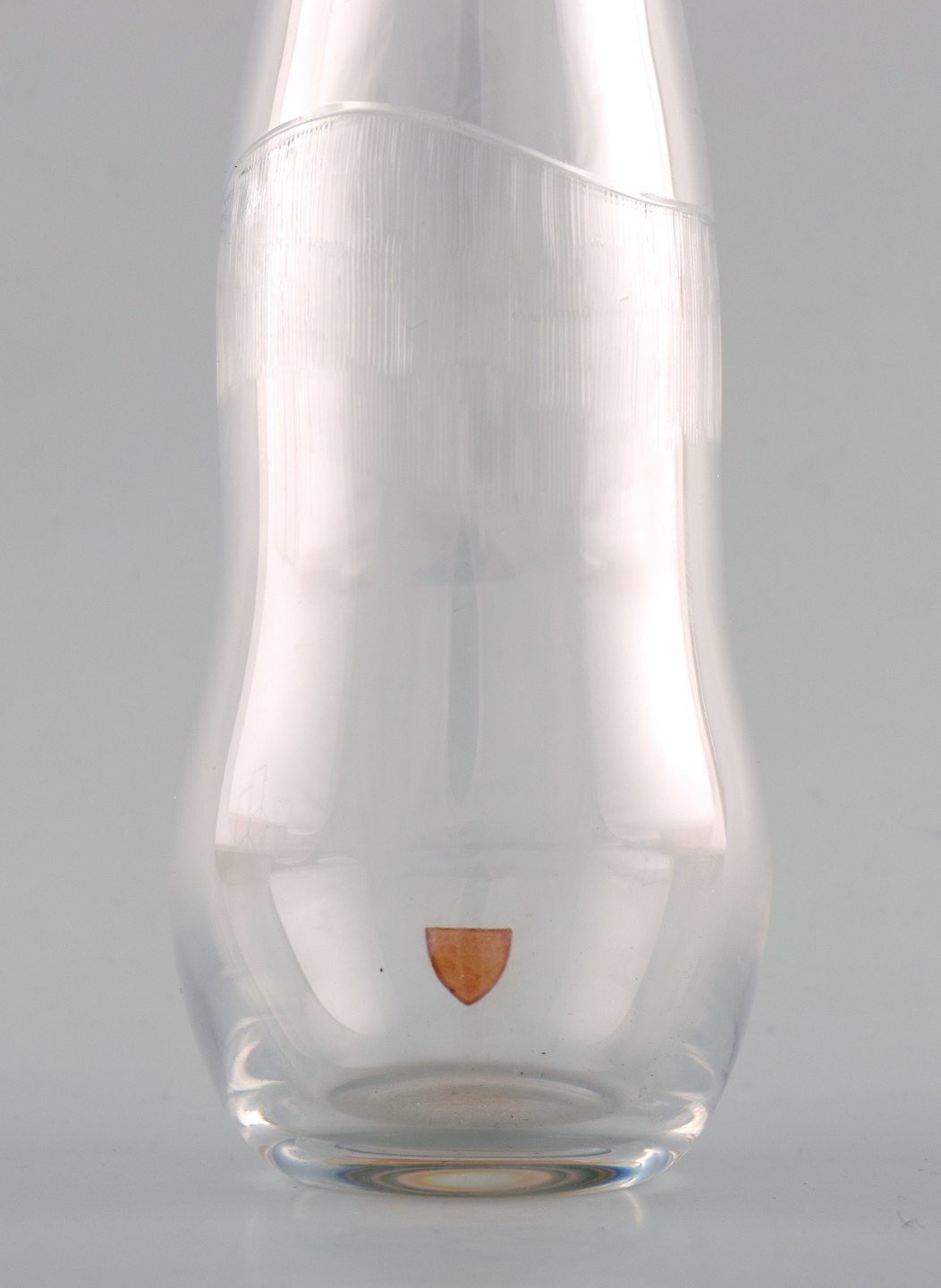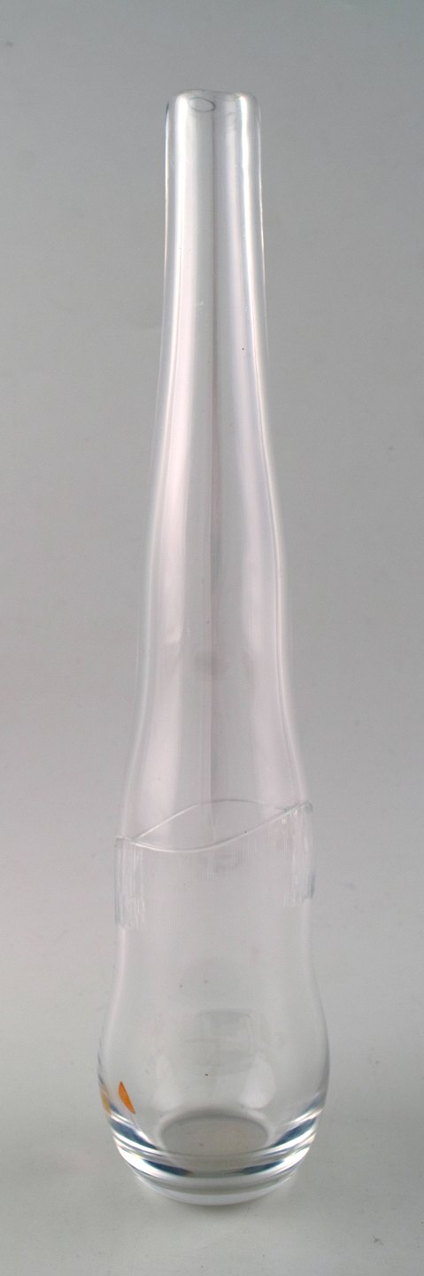 Stor Orrefors kunstglasvase, stilrent svensk design. 1950/60´erne. Signeret : Orrefors fa 3453/1 32 cm. høj. I god stand.