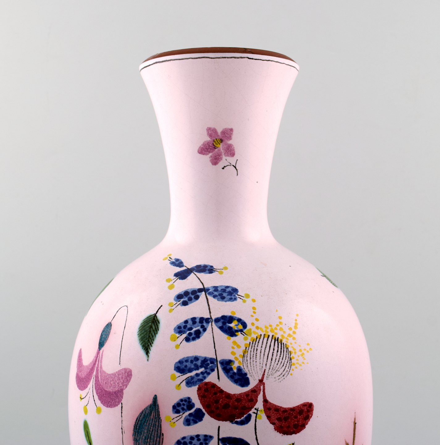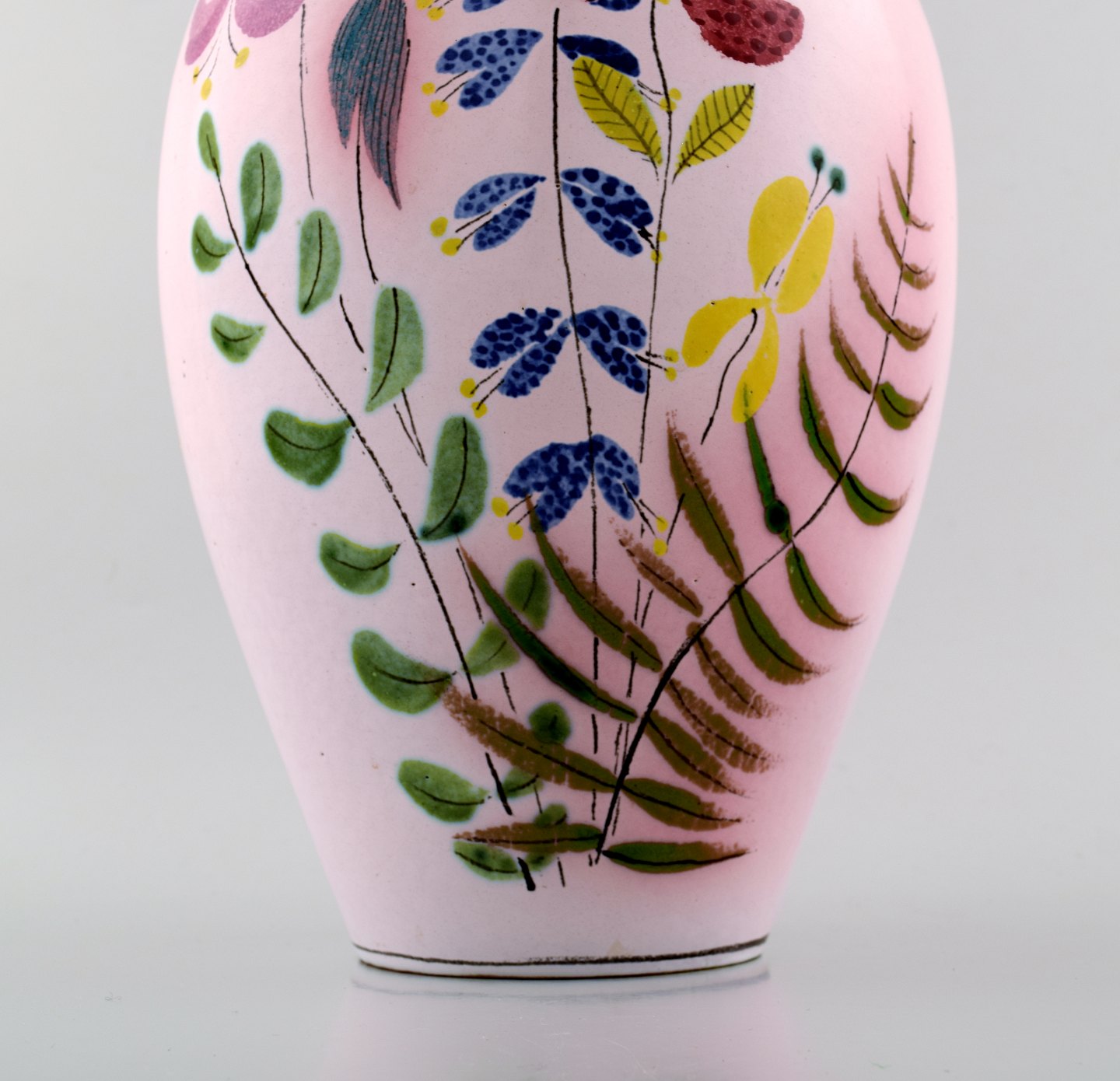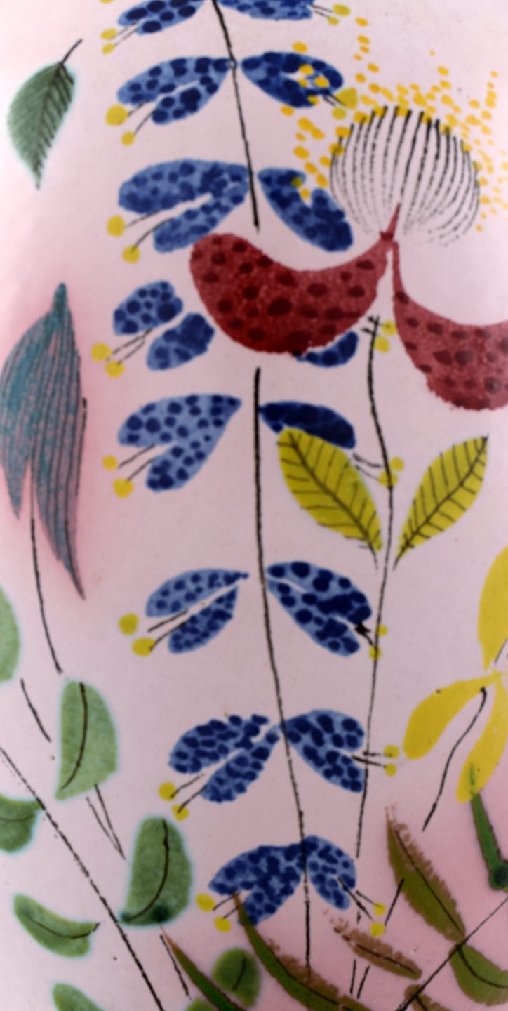 Stig Lindberg Studio Hand for Gustavsberg. Large vase with hand painted decoration, 1940 / 50s. Signed. In perfect condition. Measures: 39 cm. x 19 cm.
