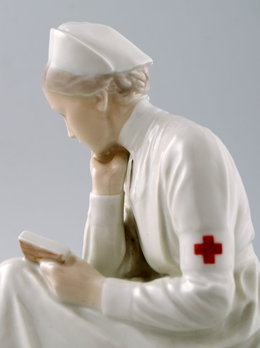 Rare Bing & Grondahl/ B&G 1866 Red Cross nurse/samarit. Measures: 18 cm. x 16 cm. In perfect condition. Factory 1st.