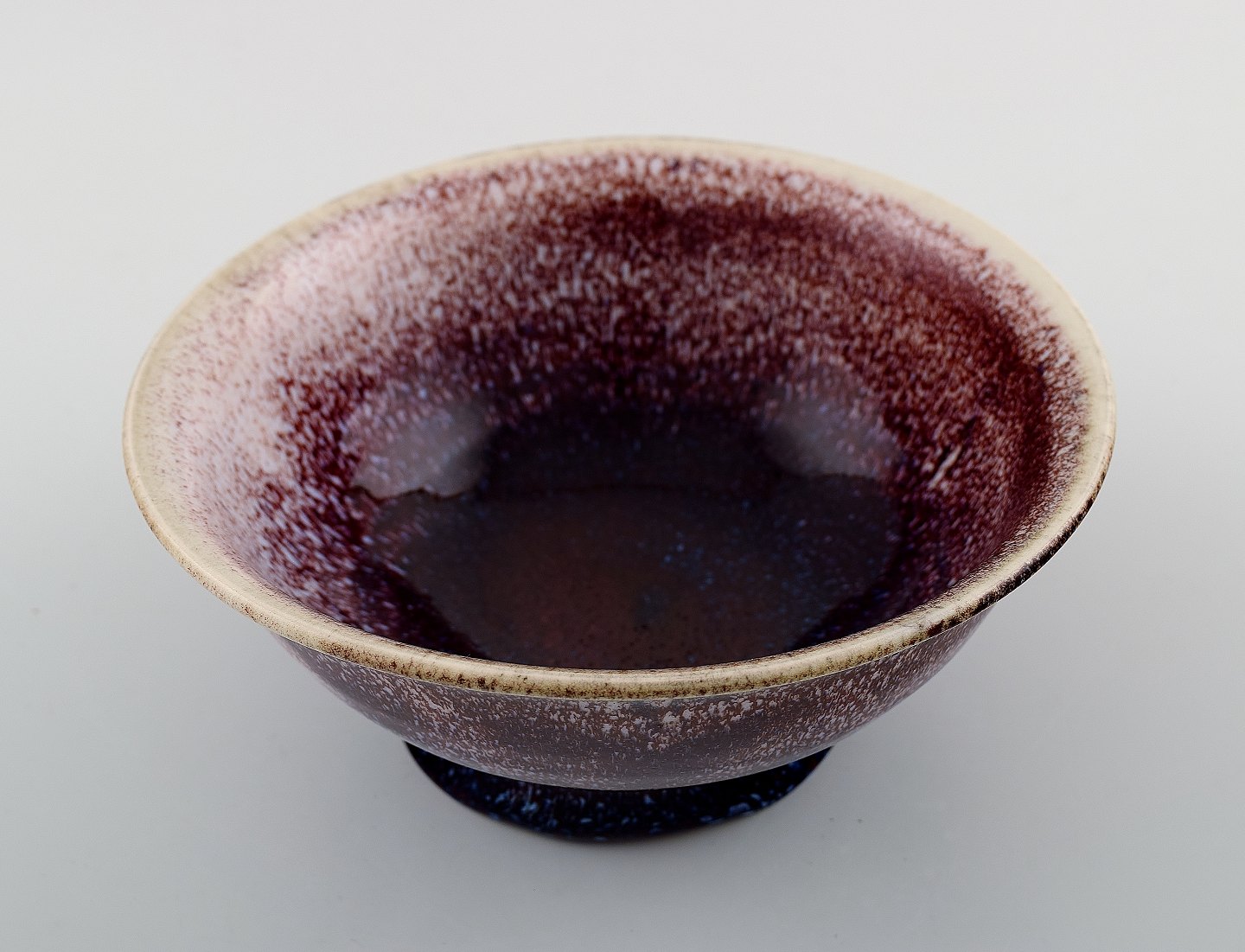 Scandinavian ceramist, art pottery bowl with purple glaze. Signed illegible. Measures: 14.5 cm. x 6 cm. In perfect condition.